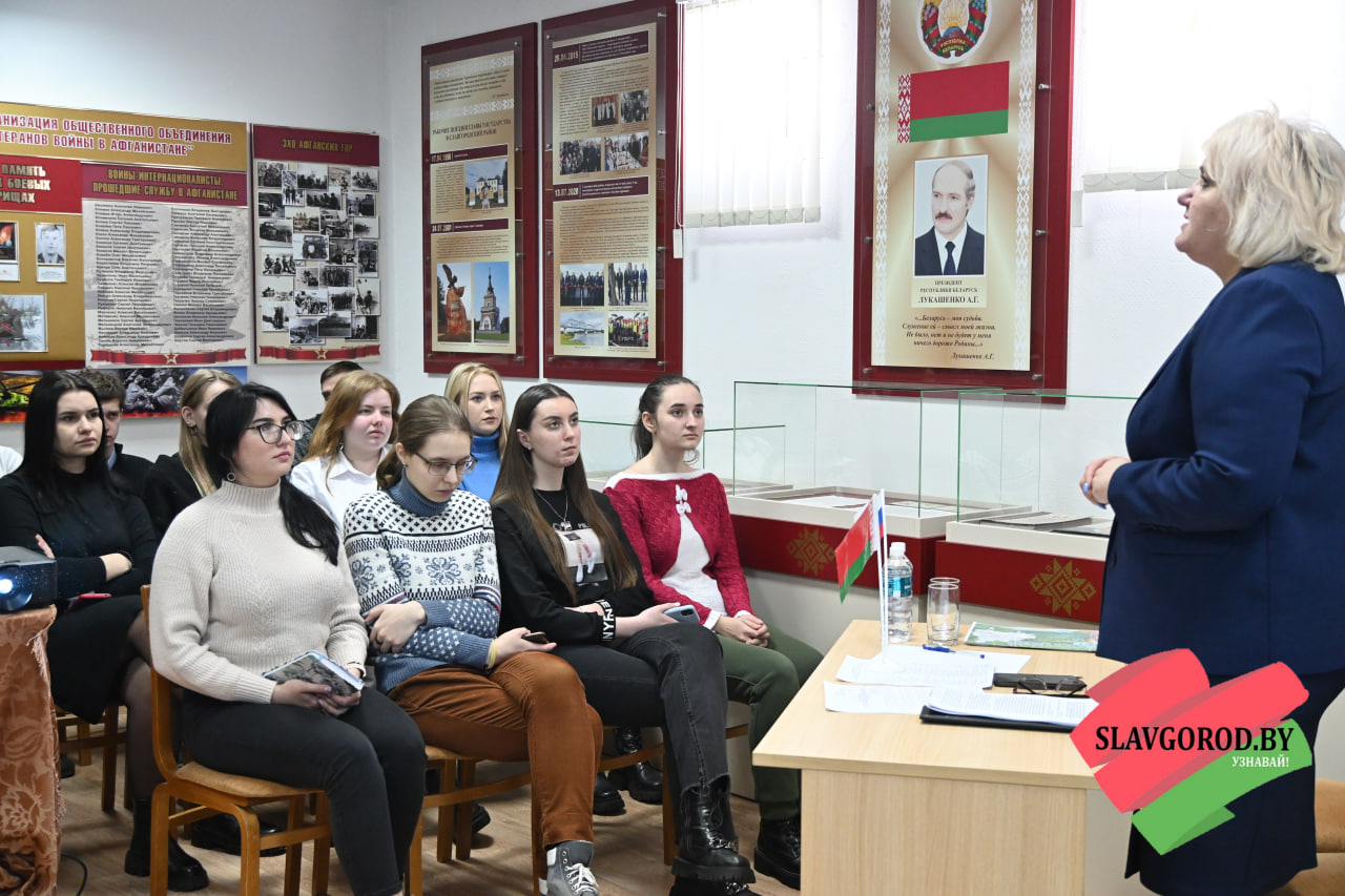Диалоговая площадка с молодежью района, посвященная Дню единения народов Беларуси и России, прошла на базе районного историко-краеведческого музея. Спикером на ней выступила председатель районного Совета депутатов Светлана Езерская.