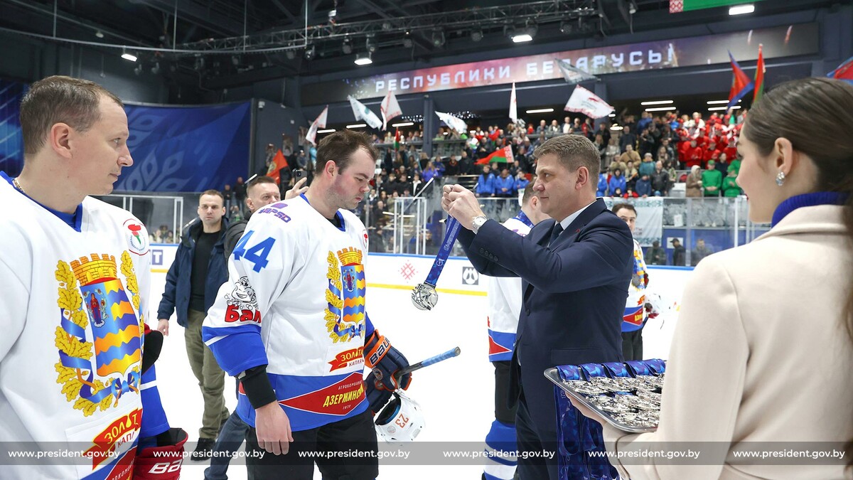 На льду столичной «Олимпик-Арены» 8 апреля дружина Главы государства во втором поединке решающей серии XVI турнира выиграла у команды Минской области со счетом 6:4 (2:0, 1:1, 3:3). Неделю назад президентская команда также была сильнее — 6:1.