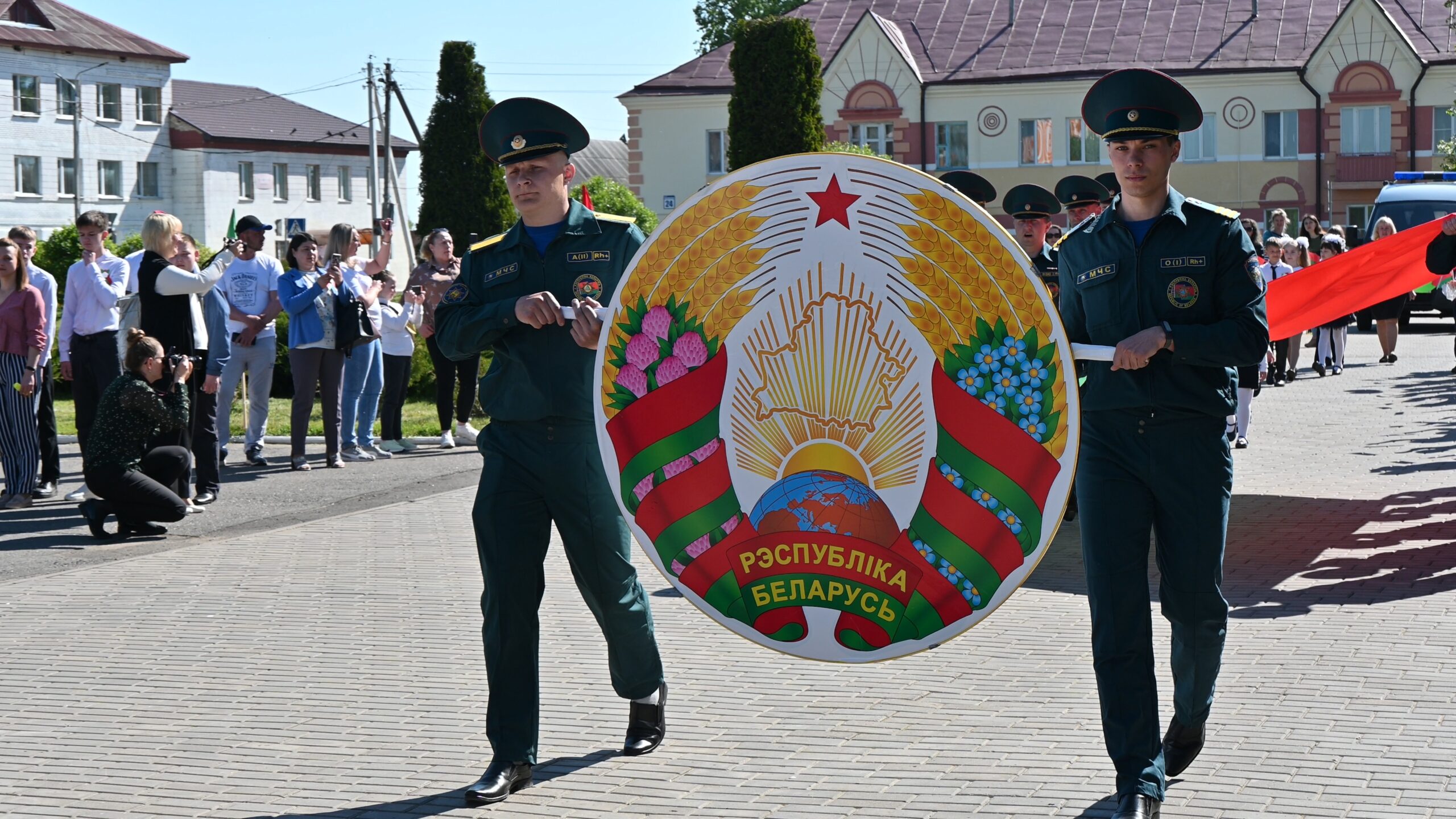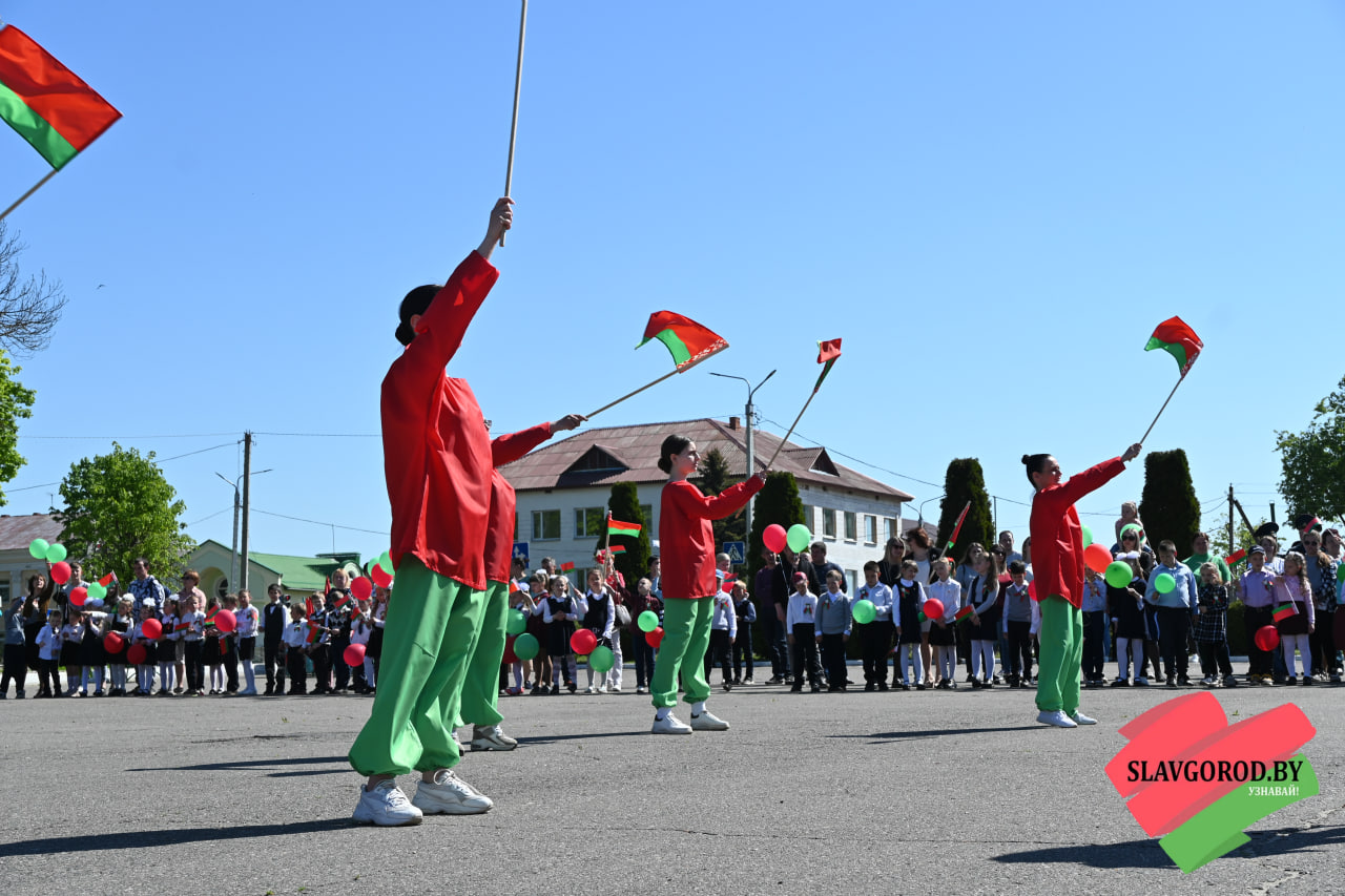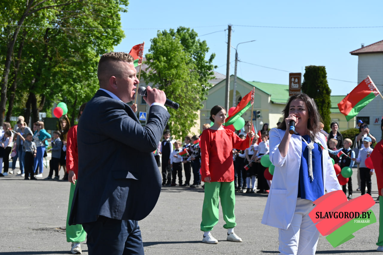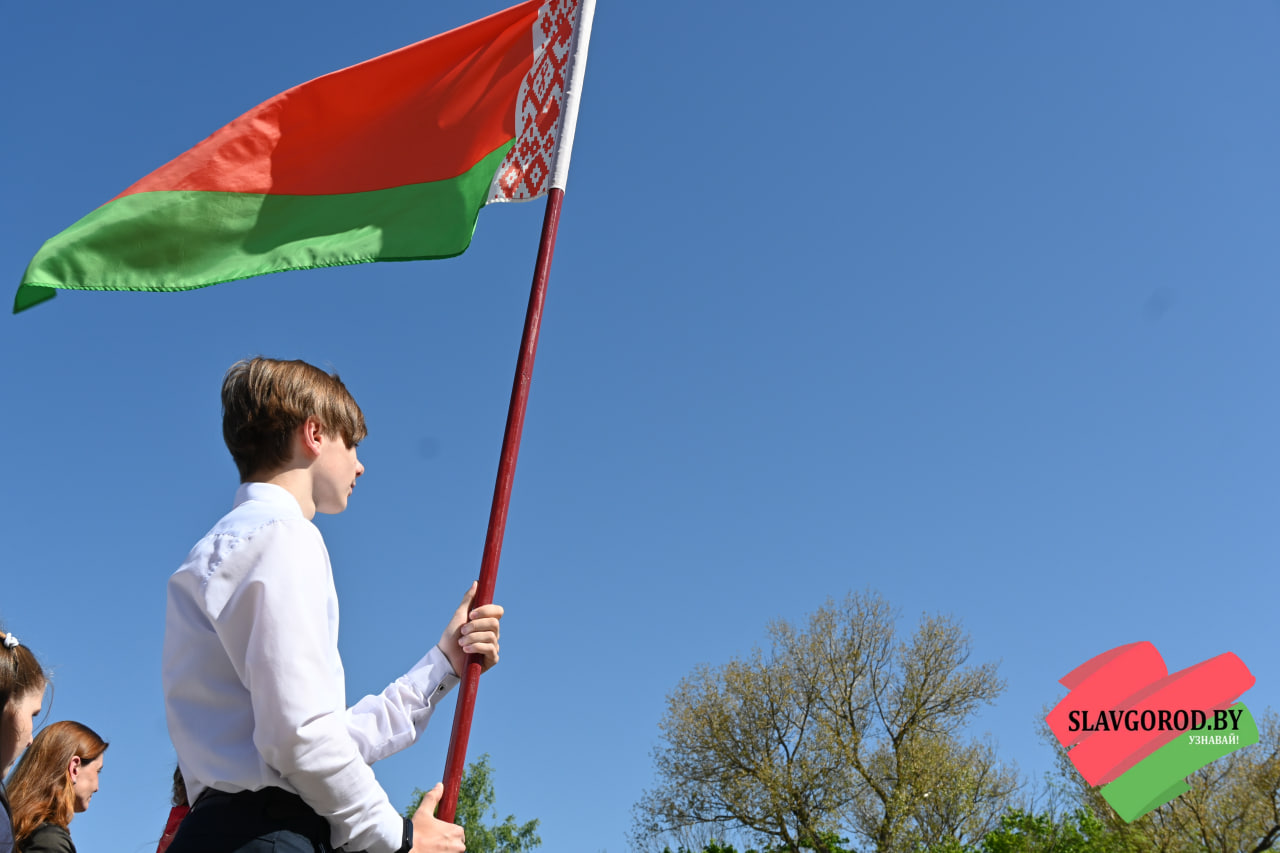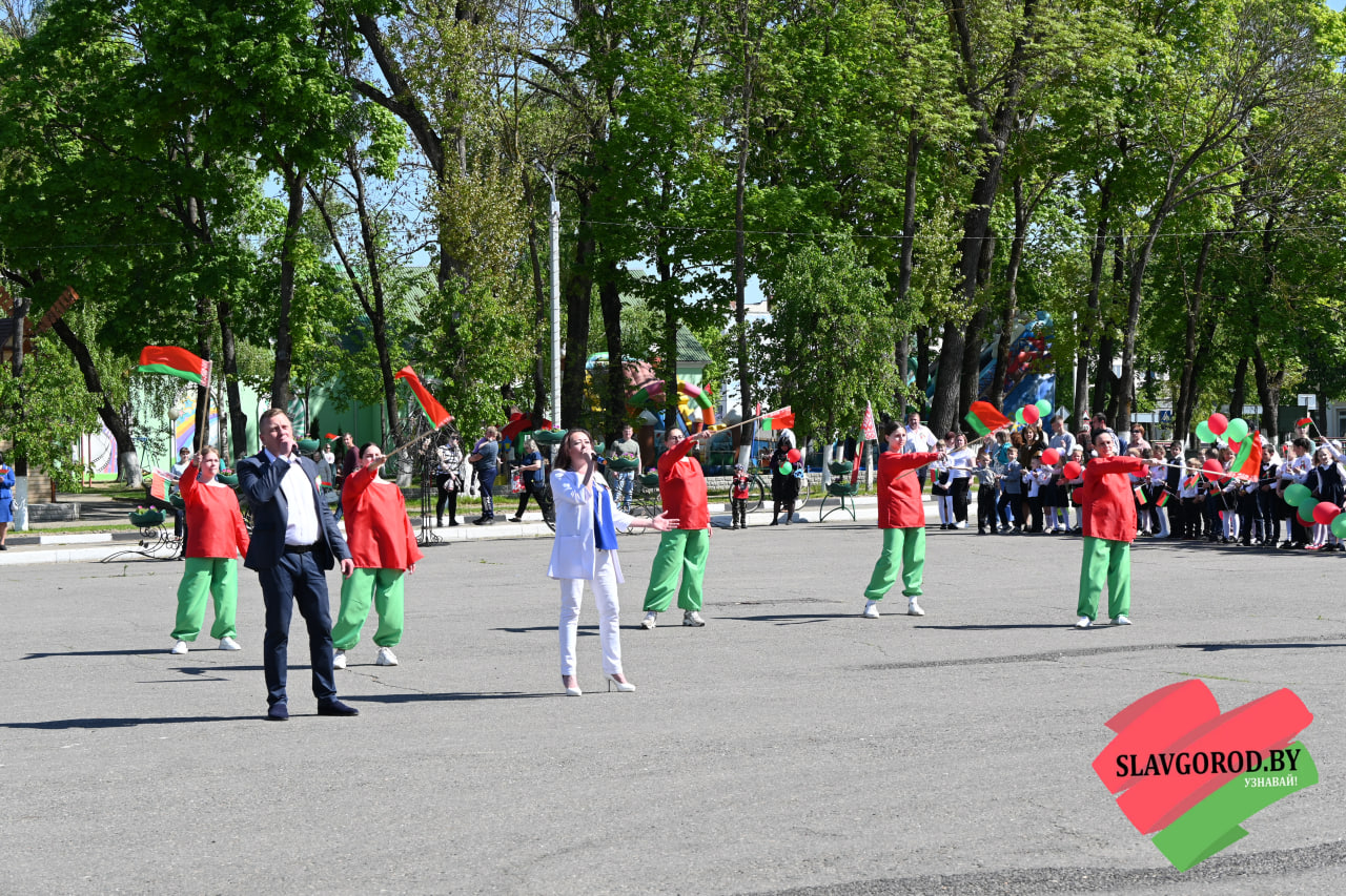Сотрудники Славгородского РОЧС внесли на площадь Государственные символы — Герб и Флаг, а юные славгородчане, которых чуть позже принимали в октябрята и пионеры, исполнили Государственный Гимн.