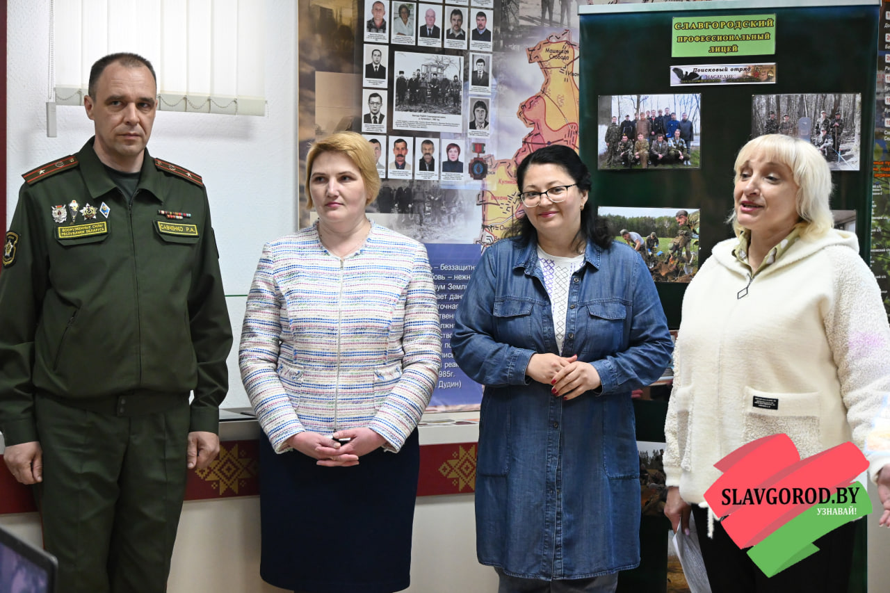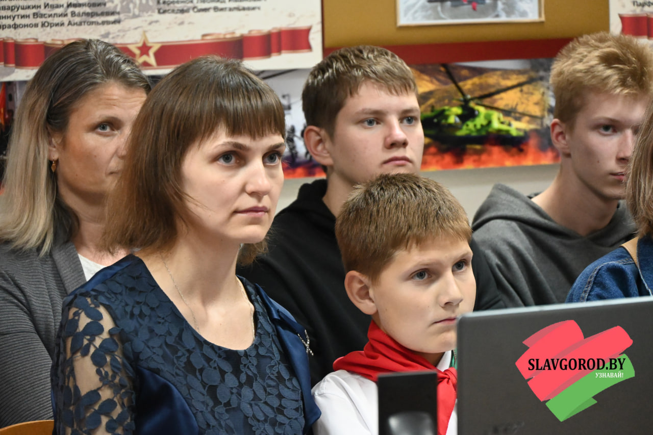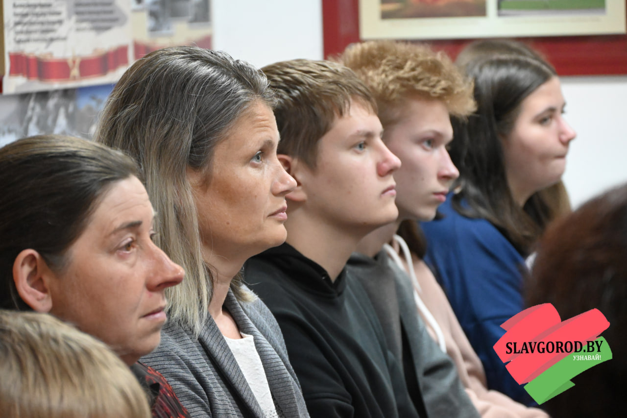 Посетили урок мужества и Почётные гости: заместитель военного комиссара по территориальной обороне военного  комиссариата Чаусского и Славгородского районов Роман Савченко, первый секретарь РК ОО «БРСМ» Виктория Городецкая, директор Централизованной сети публичных библиотек Наталья Шамалова, заместитель командира славгородской поисковой группы «Наследие» Александр Халеев.