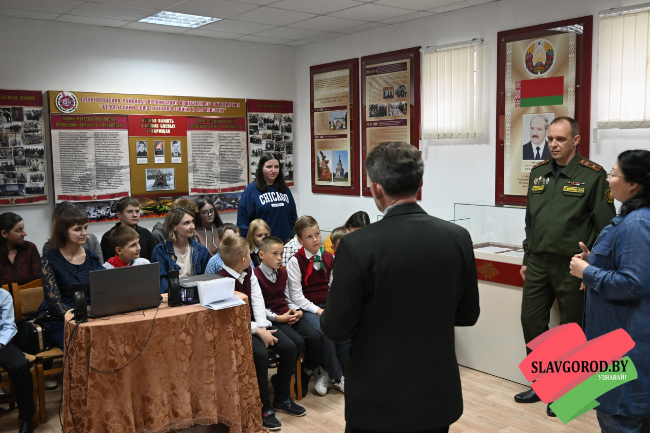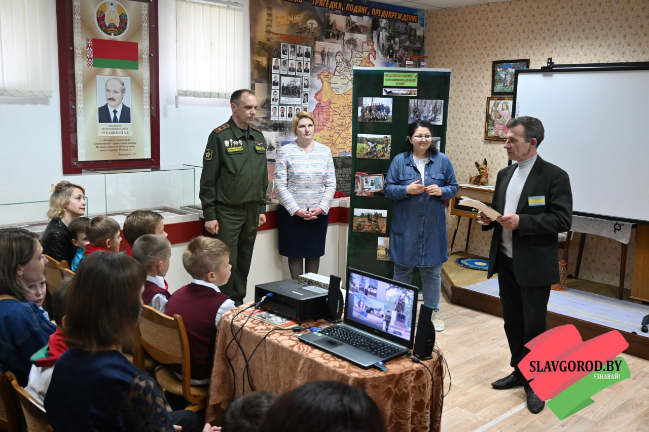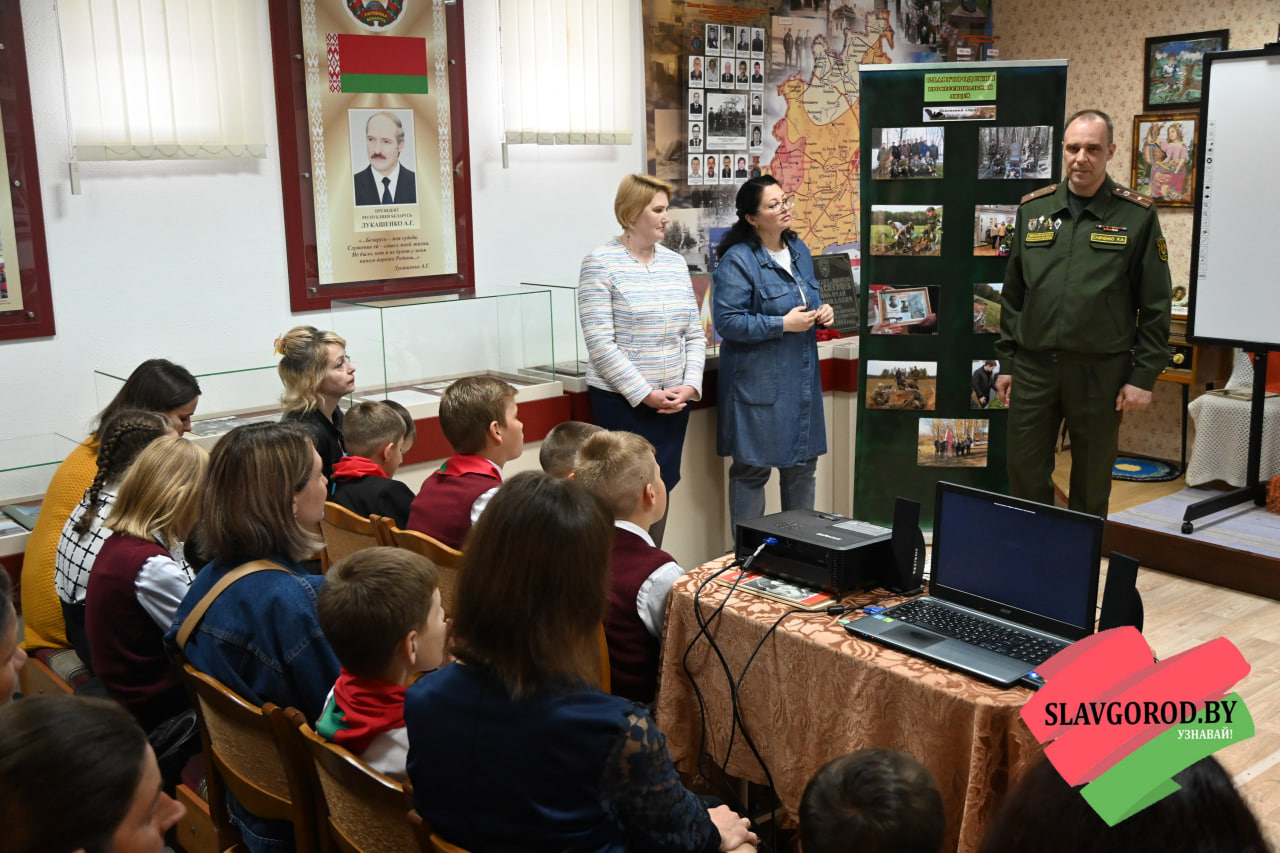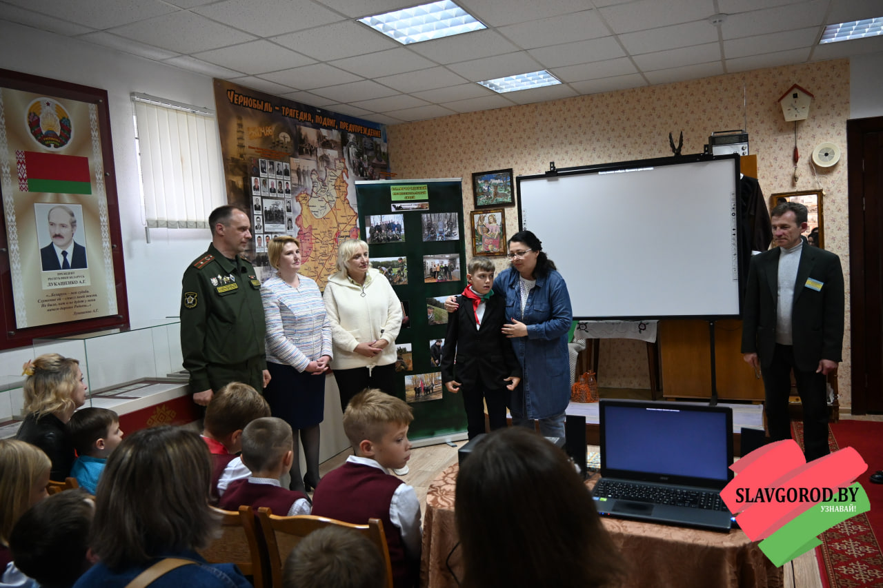 Посетили урок мужества и Почётные гости: заместитель военного комиссара по территориальной обороне военного  комиссариата Чаусского и Славгородского районов Роман Савченко, первый секретарь РК ОО «БРСМ» Виктория Городецкая, директор Централизованной сети публичных библиотек Наталья Шамалова, заместитель командира славгородской поисковой группы «Наследие» Александр Халеев.
