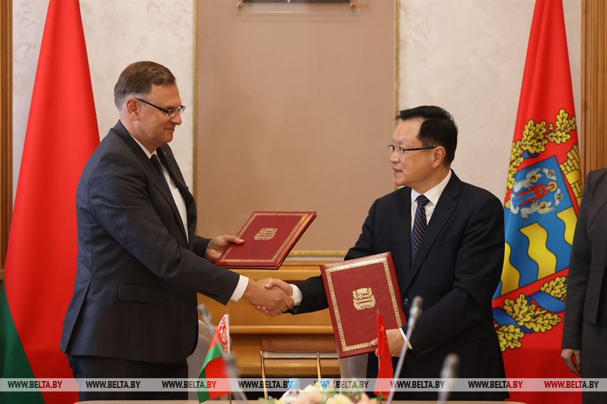 Минская область заинтересована в развитии сотрудничества с китайским Чунцином в различных сферах, в том числе в производстве реагентов и электромобилей, медицине, образовании, туризме, логистике, обмене опытом и установлении побратимских связей между регионами. Об этом заявил сегодня заместитель председателя Миноблисполкома Денис Курленко на переговорах с делегацией города Чунцин во главе с заместителем председателя действующего там Постоянного комитета Собрания народных представителей Цюй Цянем, передает корреспондент БЕЛТА.