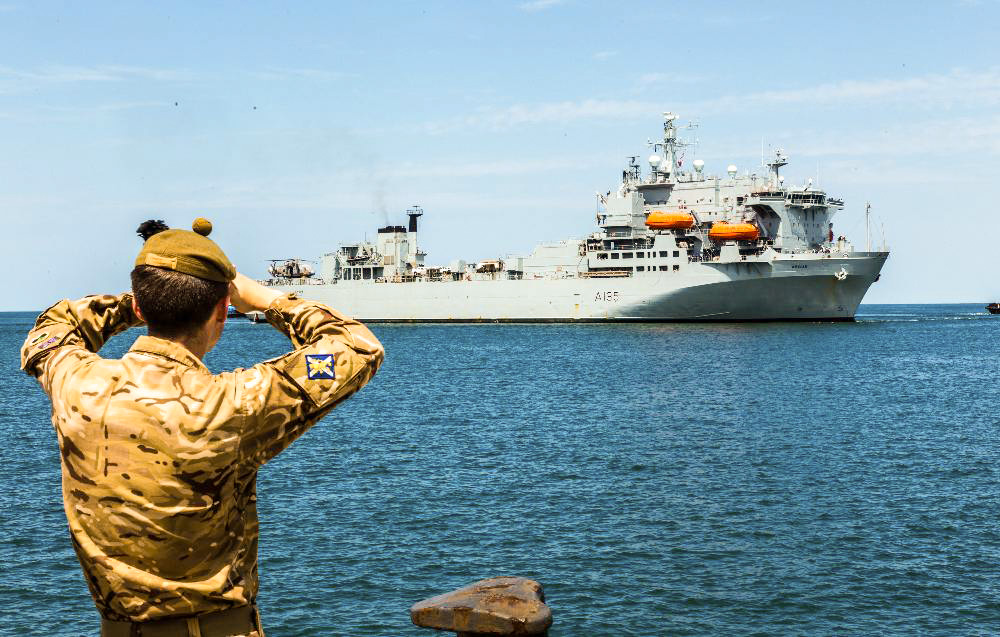 Речь идет о двух кораблях королевского вспомогательного флота: о RFA Argus, на борту которого могут размещаться до девяти транспортных и ударных вертолетов, и большом десантном корабле RFA Lyme Bay.