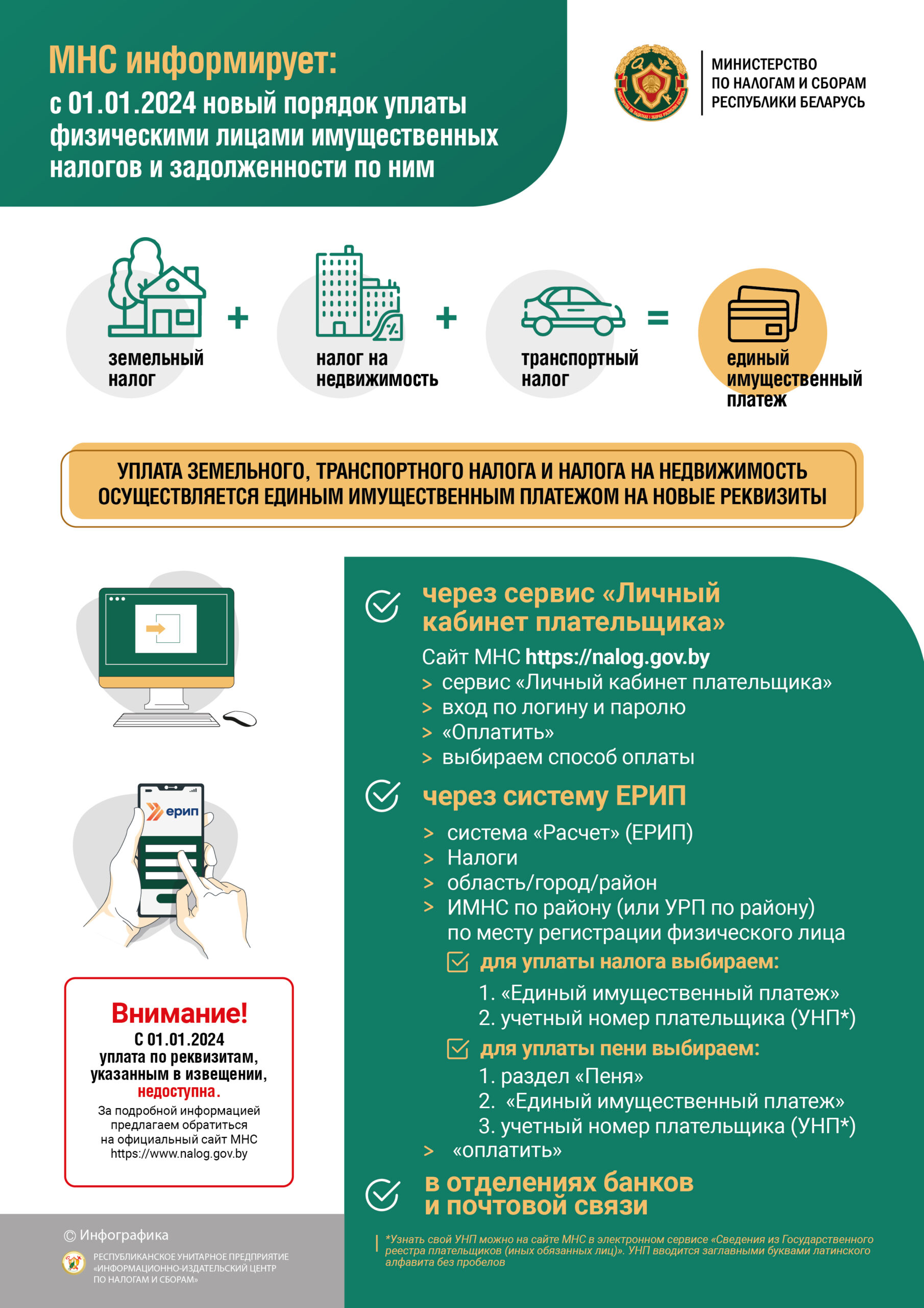 Инспекция Министерства по налогам и сборам по Могилевской области информирует о введении с 01.01.2024 единого имущественного платежа.