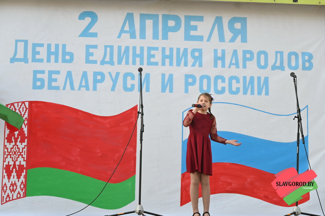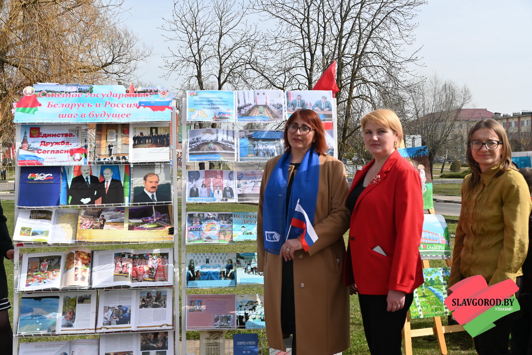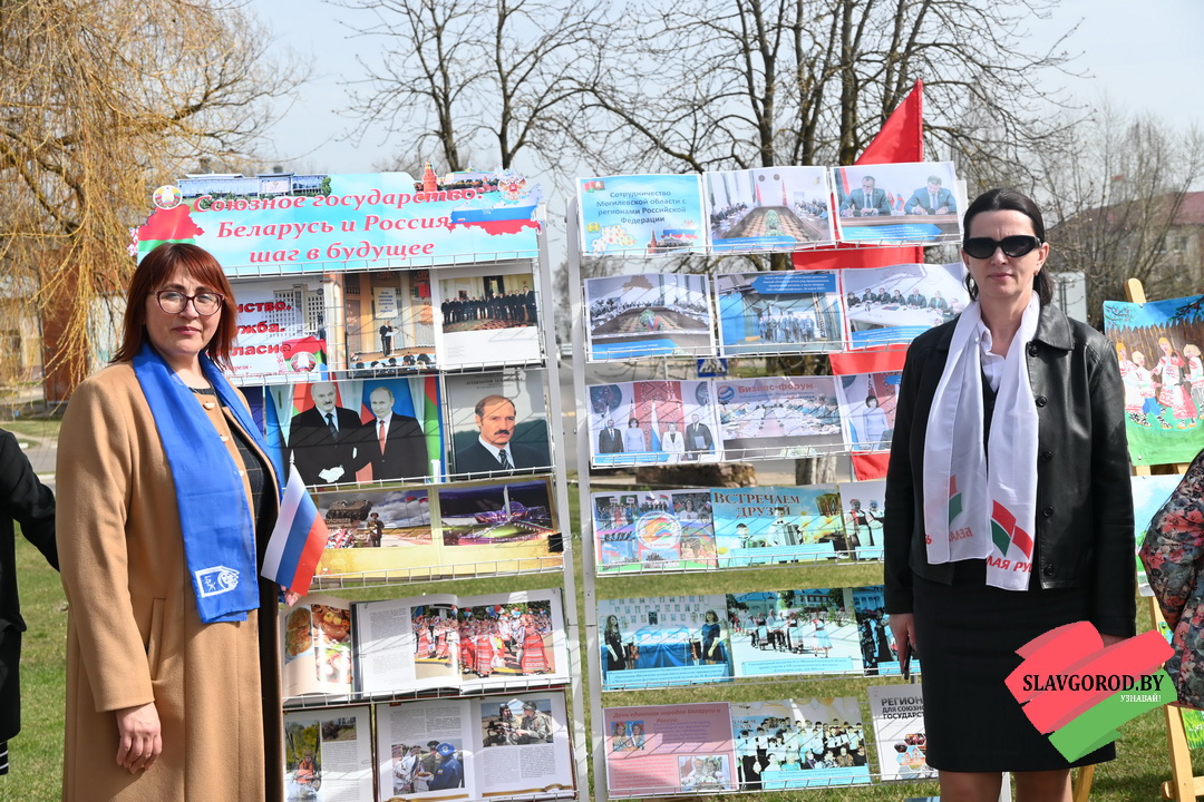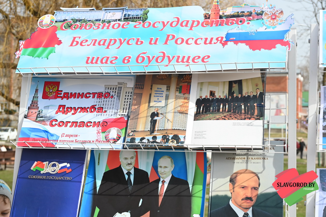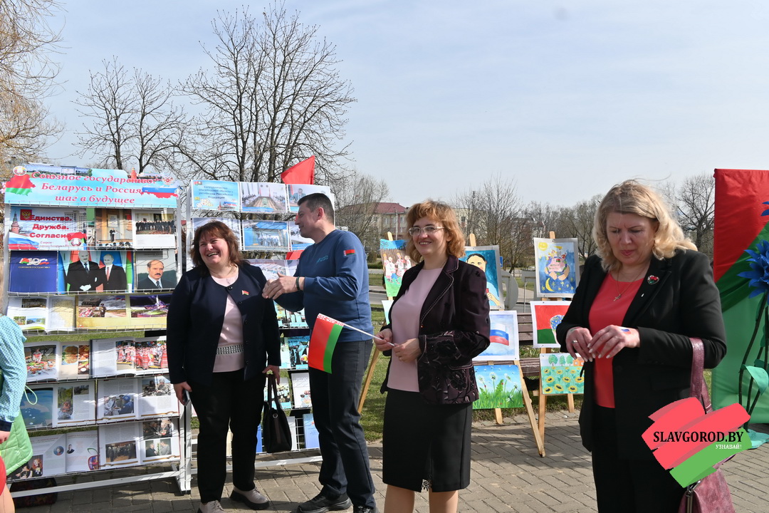 День единения народов Беларуси и России символизирует историческую связь и дружбу между двумя братскими странами. К этой дате на открытой площадке РЦК и НТ работники районного историко-краеведческого музея для славгородчан оформили фотозону. Тематическую информационную выставку «Беларусь – Россия: дружба без границ» представили библиотекари центральной библиотеки. Интерес гостей вызвала выставка детских рисунков «Мы вместе», авторами которых являются учащиеся центра детского творчества и детской школы искусств. Работала и зона аквагрима, где педагог детской школы искусств и художник центральной библиотеки рисовали изображения флагов Беларуси и России всем желающим.
