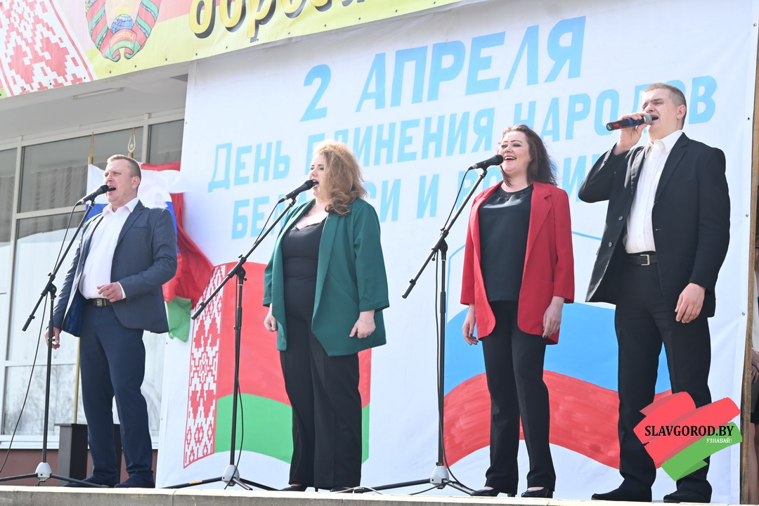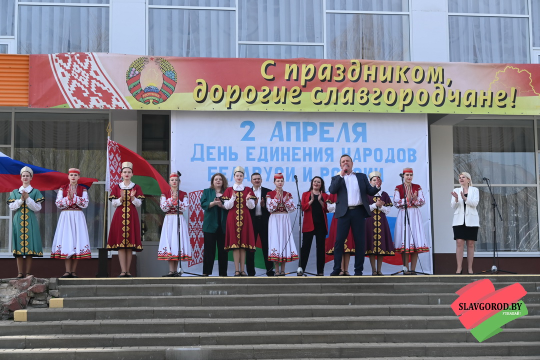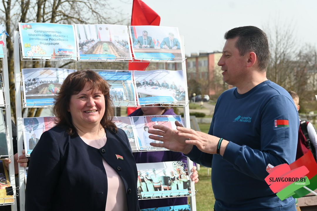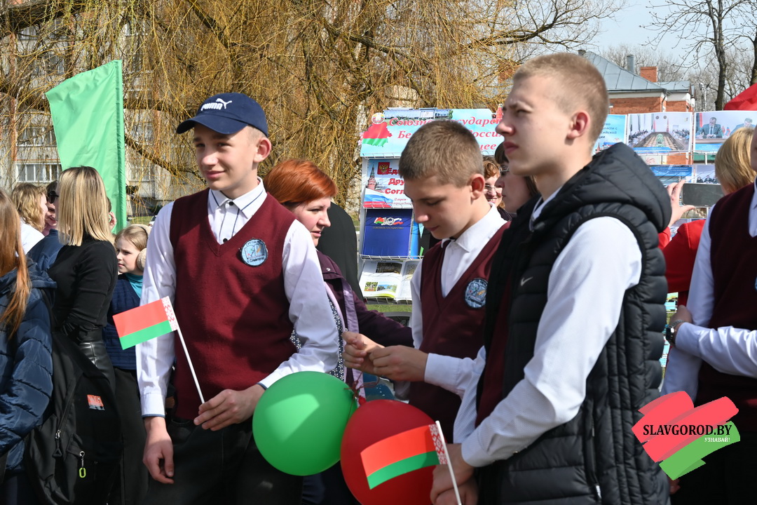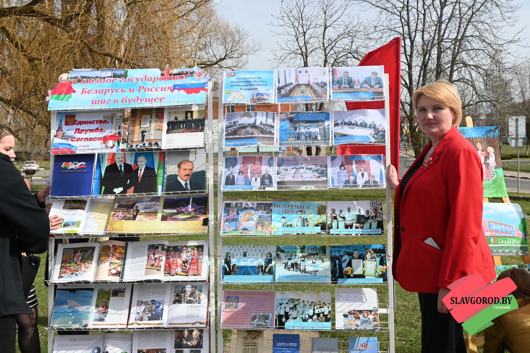 День единения народов Беларуси и России символизирует историческую связь и дружбу между двумя братскими странами. К этой дате на открытой площадке РЦК и НТ работники районного историко-краеведческого музея для славгородчан оформили фотозону. Тематическую информационную выставку «Беларусь – Россия: дружба без границ» представили библиотекари центральной библиотеки. Интерес гостей вызвала выставка детских рисунков «Мы вместе», авторами которых являются учащиеся центра детского творчества и детской школы искусств. Работала и зона аквагрима, где педагог детской школы искусств и художник центральной библиотеки рисовали изображения флагов Беларуси и России всем желающим.