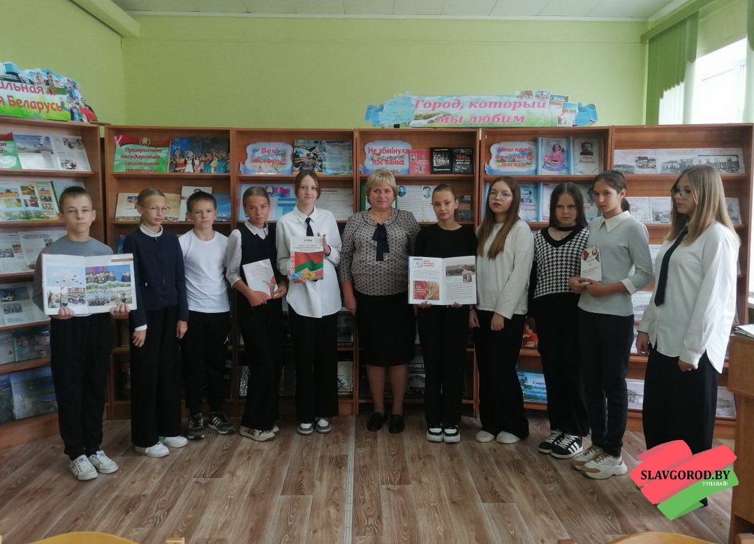 Сотрудники центральной библиотеки для учащихся ГУО «Средняя школа №1 г. Славгорода» провели час исторической памяти «Тернистый путь к единству нации». Библиотекари акцентировали внимание присутствующих на вопросах исторического и современного контекста Дня народного единства, рассказали о том, что этот праздник служит объективным напоминанием о самодостаточности белорусской нации и незыблемости белорусской государственности, символизирует преемственность всех поколений белорусского народа, формирует чувство сопричастности каждого гражданина к судьбе страны и укрепляет сплоченность общества на пути построения сильной и суверенной Беларуси. Школьников также познакомили с достижениями Беларуси в различных сферах деятельности, с именами известных личностей, внесших значительный вклад в развитие нашей страны и малой родины, которые были представлены на книжно-иллюстративной выставке «Независимая, сильная и процветающая Беларусь».