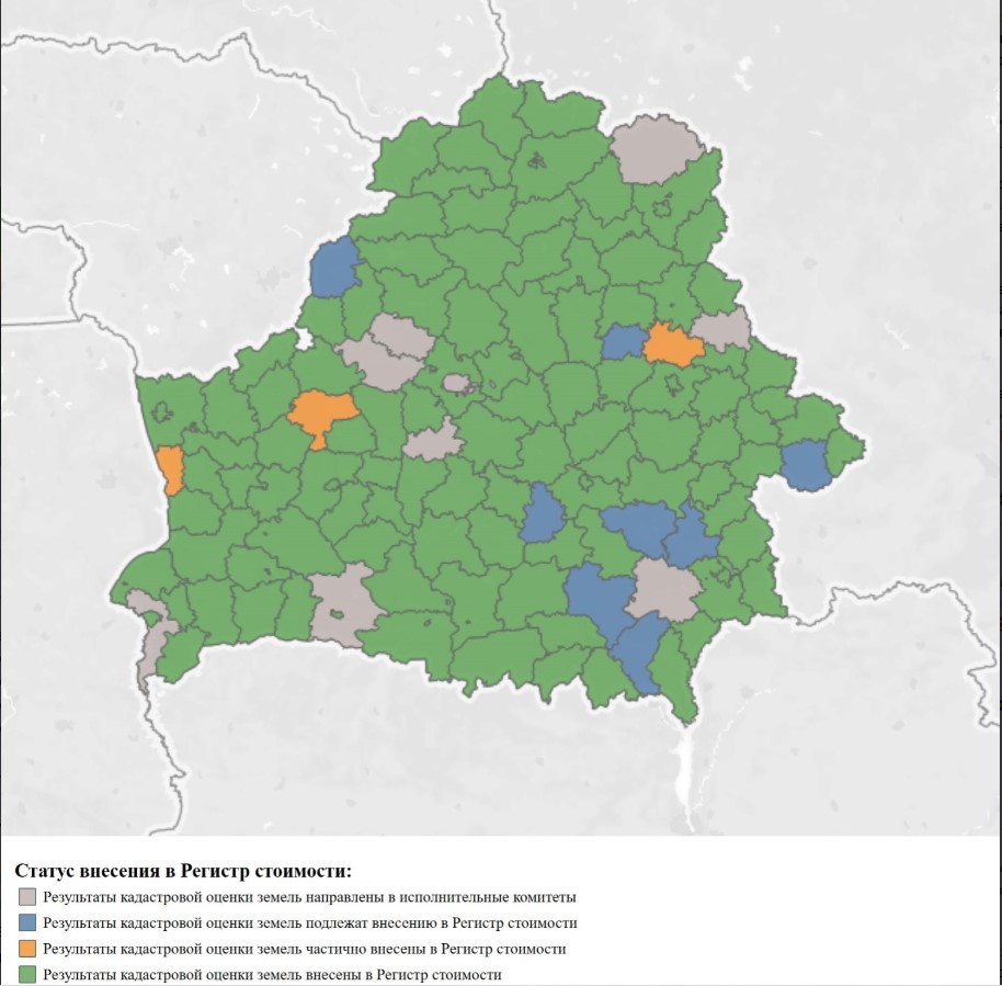 — По состоянию на 13 августа в адрес агентства поступило 133 решения от местных исполнительных комитетов, — проинформировали в НКА. — В регистр стоимости внесена кадастровая стоимость для 87 процентов территории страны, в том числе для городов Гродно, Брест, Гомель, Могилев, Витебск.
