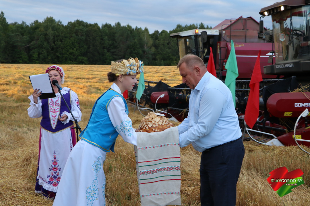 На поле ОАО «Леснянский Агро» произошло событие, которое навсегда войдёт в летопись района. Председателю Славгородского райисполкома Андрею Кожемякину торжественно вручили каравай из зерна нового урожая — символ высокого достижения, знак признания и уважения к труду хлеборобов. Этот особенный каравай передал председатель Могилевского облисполкома Анатолий Исаченко в честь намолота одного миллиона тонн зерна аграриями Приднепровского края.