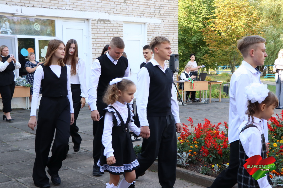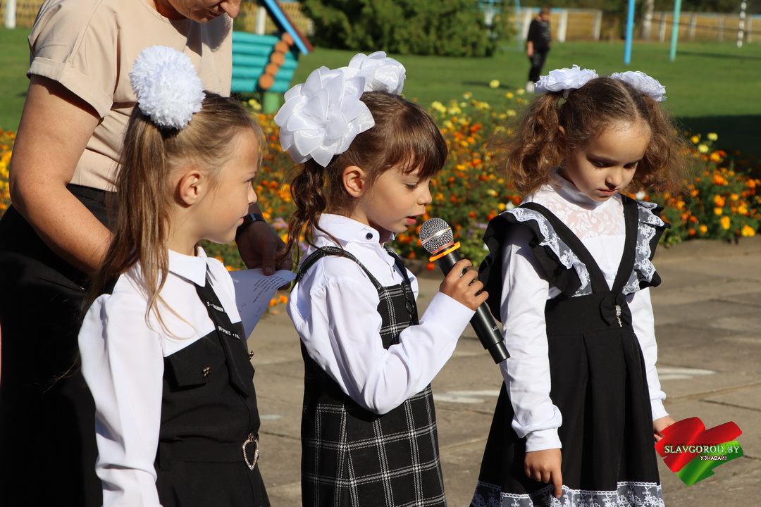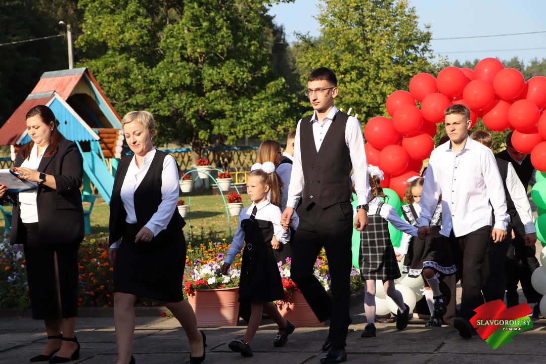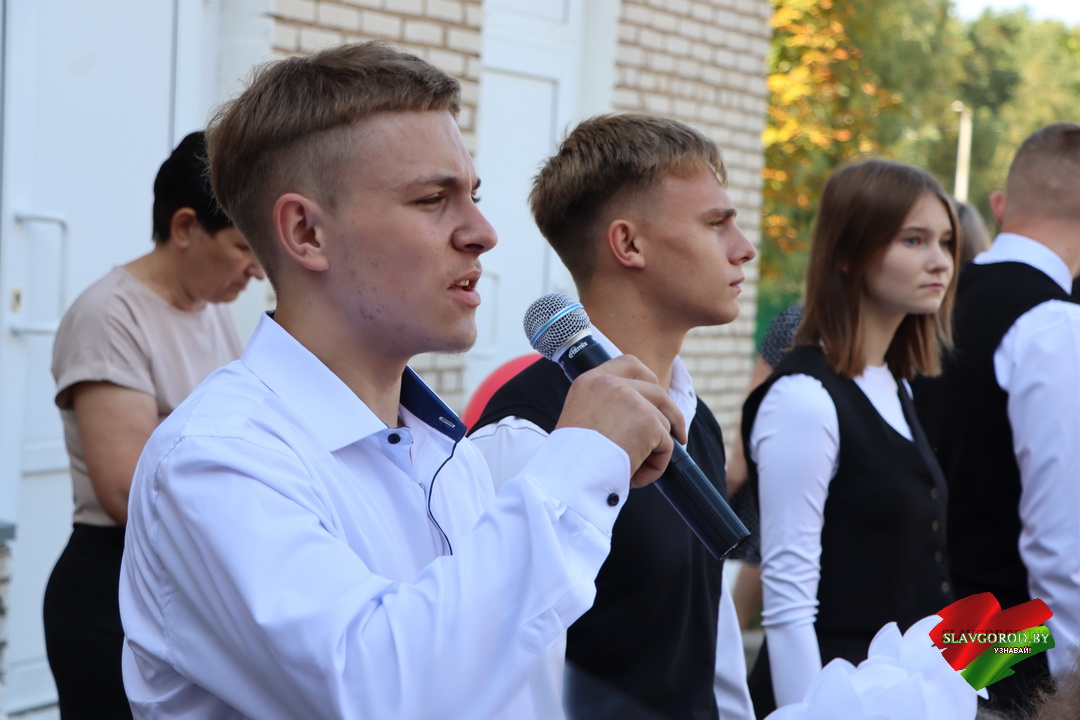 С поздравлениями к собравшимся обратились почётные гости. Тёплые слова и пожелания прозвучали для учеников, педагогов и родителей. Председатель райисполкома Андрей Кожемякин отметил важность знаний и пожелал ребятам смело идти вперёд и добиваться успехов.