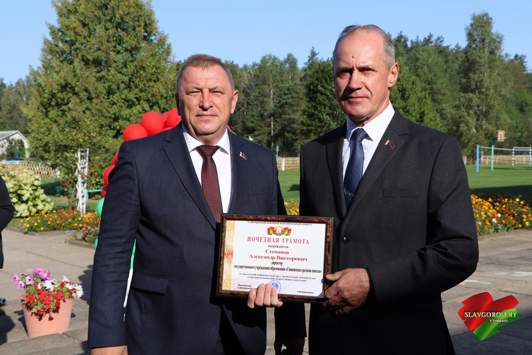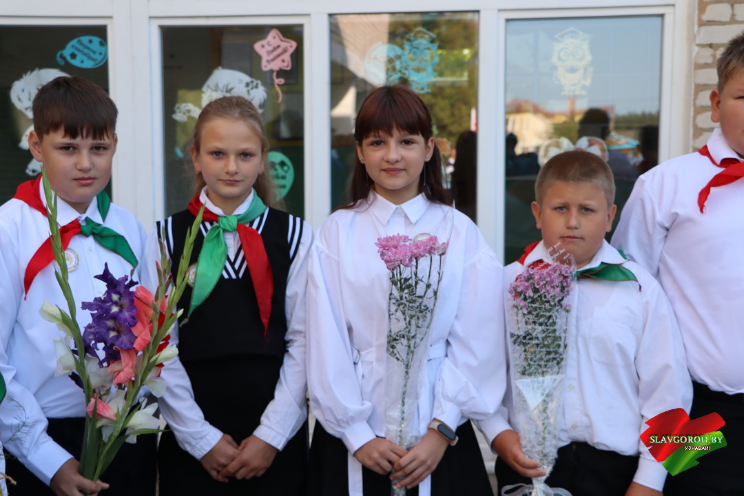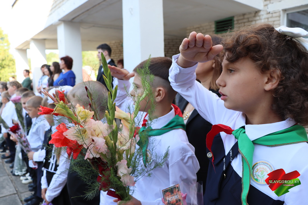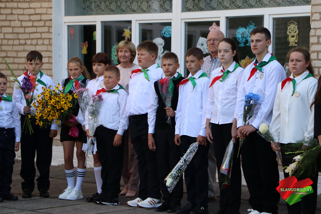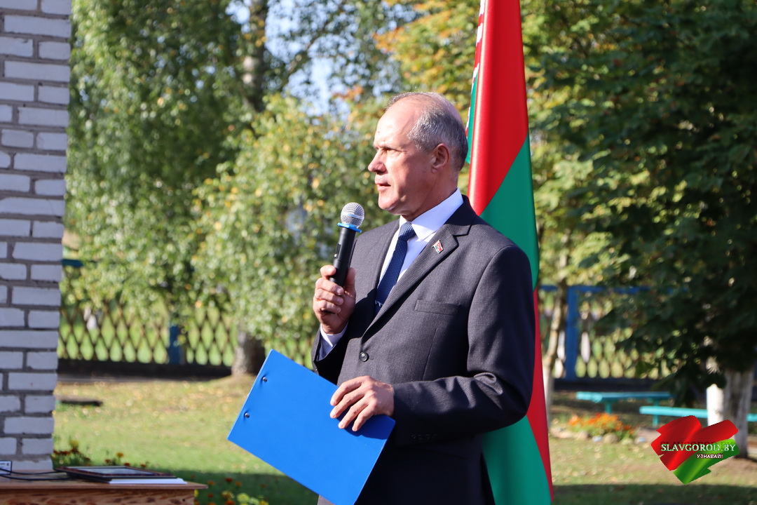 С поздравлениями к собравшимся обратились почётные гости. Тёплые слова и пожелания прозвучали для учеников, педагогов и родителей. Председатель райисполкома Андрей Кожемякин отметил важность знаний и пожелал ребятам смело идти вперёд и добиваться успехов.