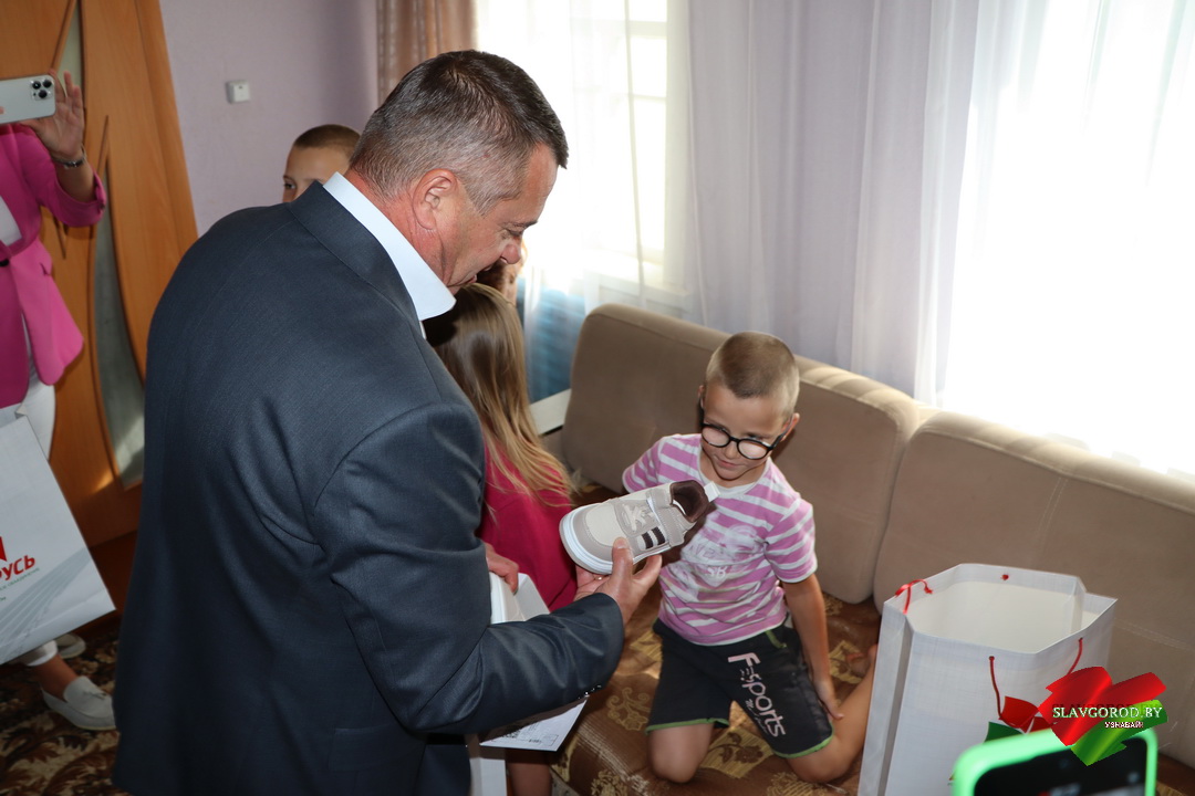 В рамках республиканской акции «Соберем портфель вместе», направленной на оказание помощи детям из малообеспеченных семей, парламентарий Александр Григорьевич и председатель районного Совета депутатов Светлана Александровна посетили многодетную семью в городе Славгороде.