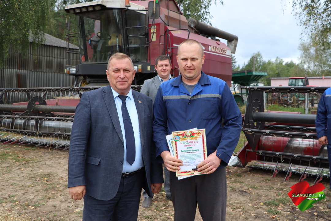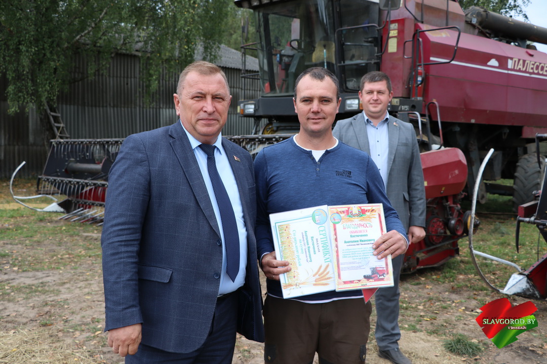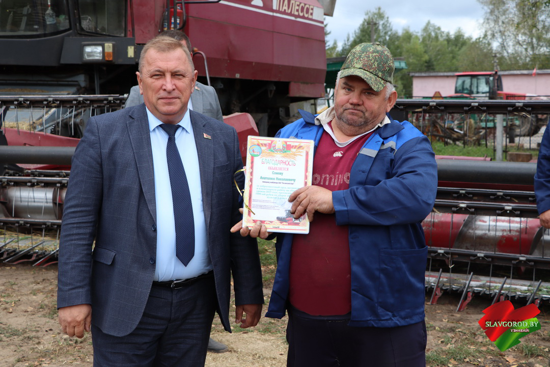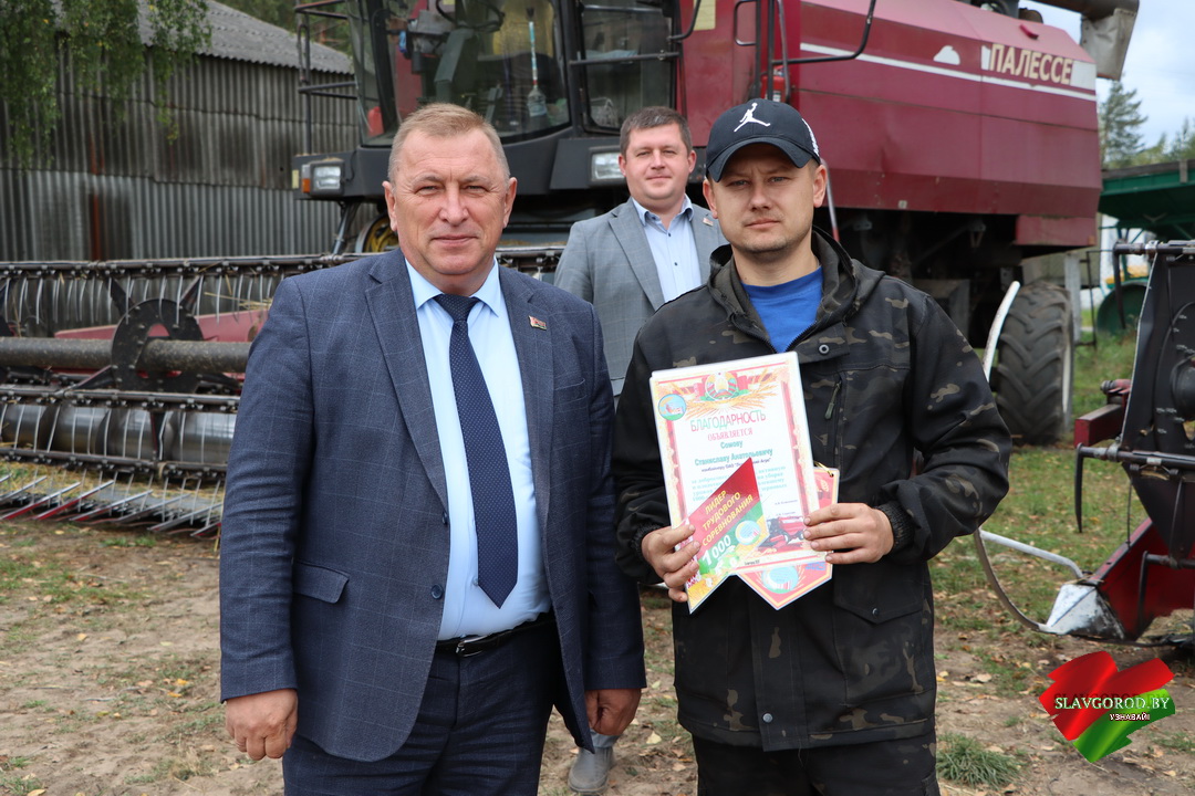 На полях КСУП «Зарянский» поздравления принимали водители ОАО «Славгородрайагропромтехника» — Александр Янчесов, Николай Истратьков и Николай Даниленко, которые преодолели 1000-тонный рубеж в перевозке зерновых культур и рапса. Их вклад не менее значим, ведь от слаженной работы водителей зависит ритм всей страды.
