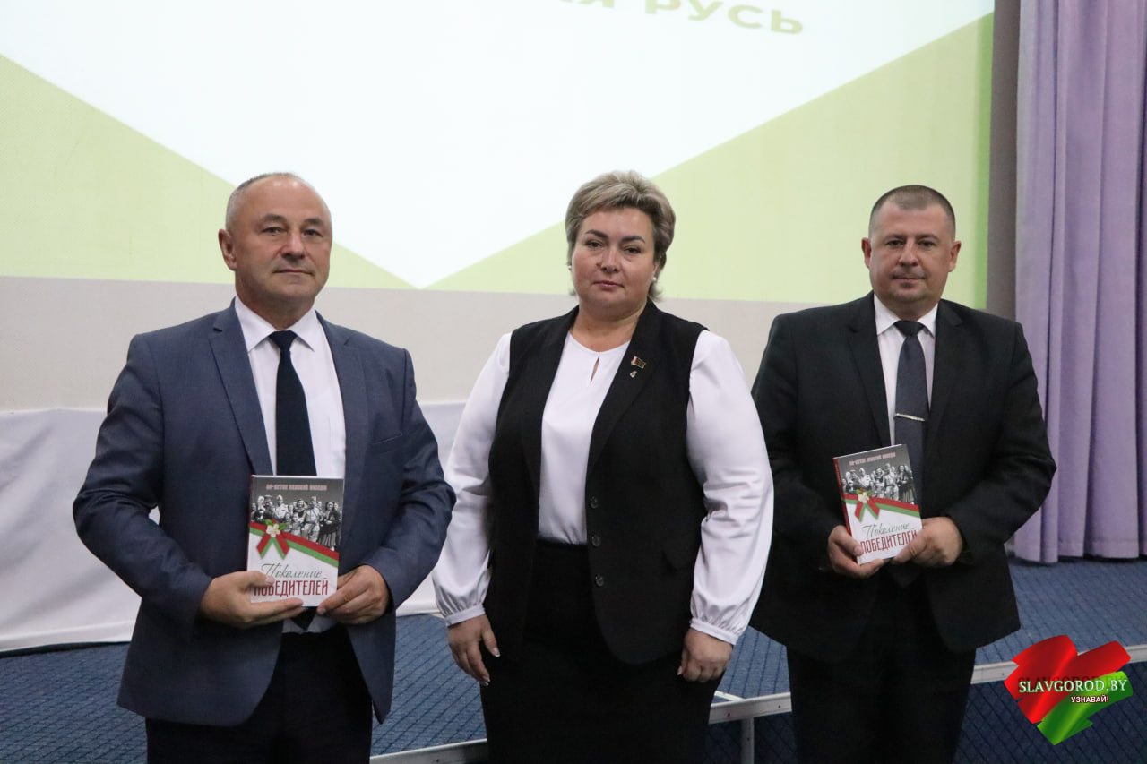 Особую значимость мероприятию придало вручение подарков. В рамках реализации областного партийного проекта «Благодарим и помним», приуроченного к 80-летию Победы в Великой Отечественной войне, библиотекам городским учреждениям образования переданы книги «Поколение победителей». Эти книги найдут достойное применение в патриотическом воспитании подрастающего поколения.