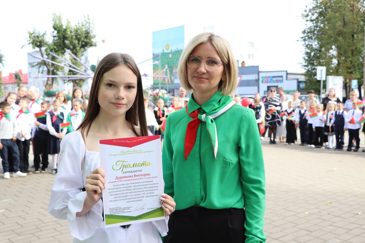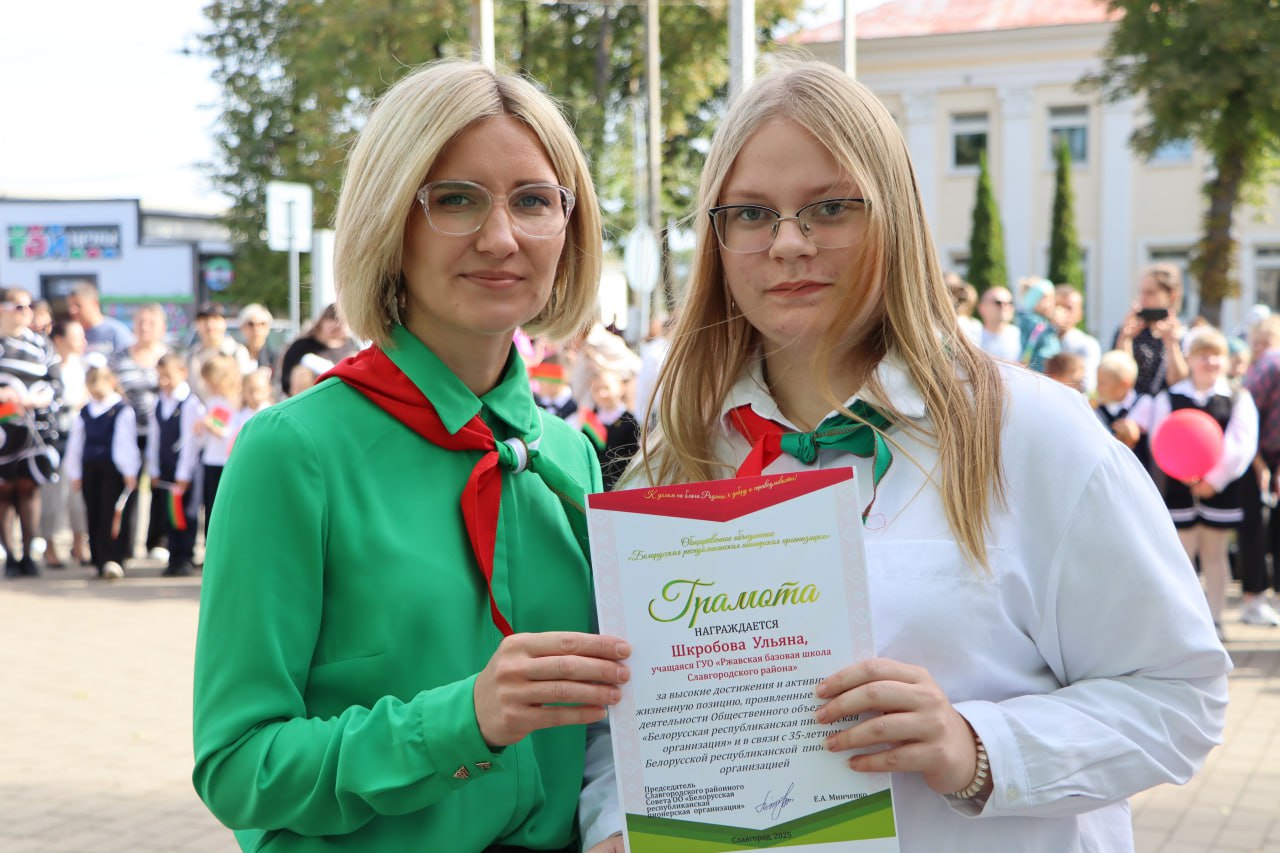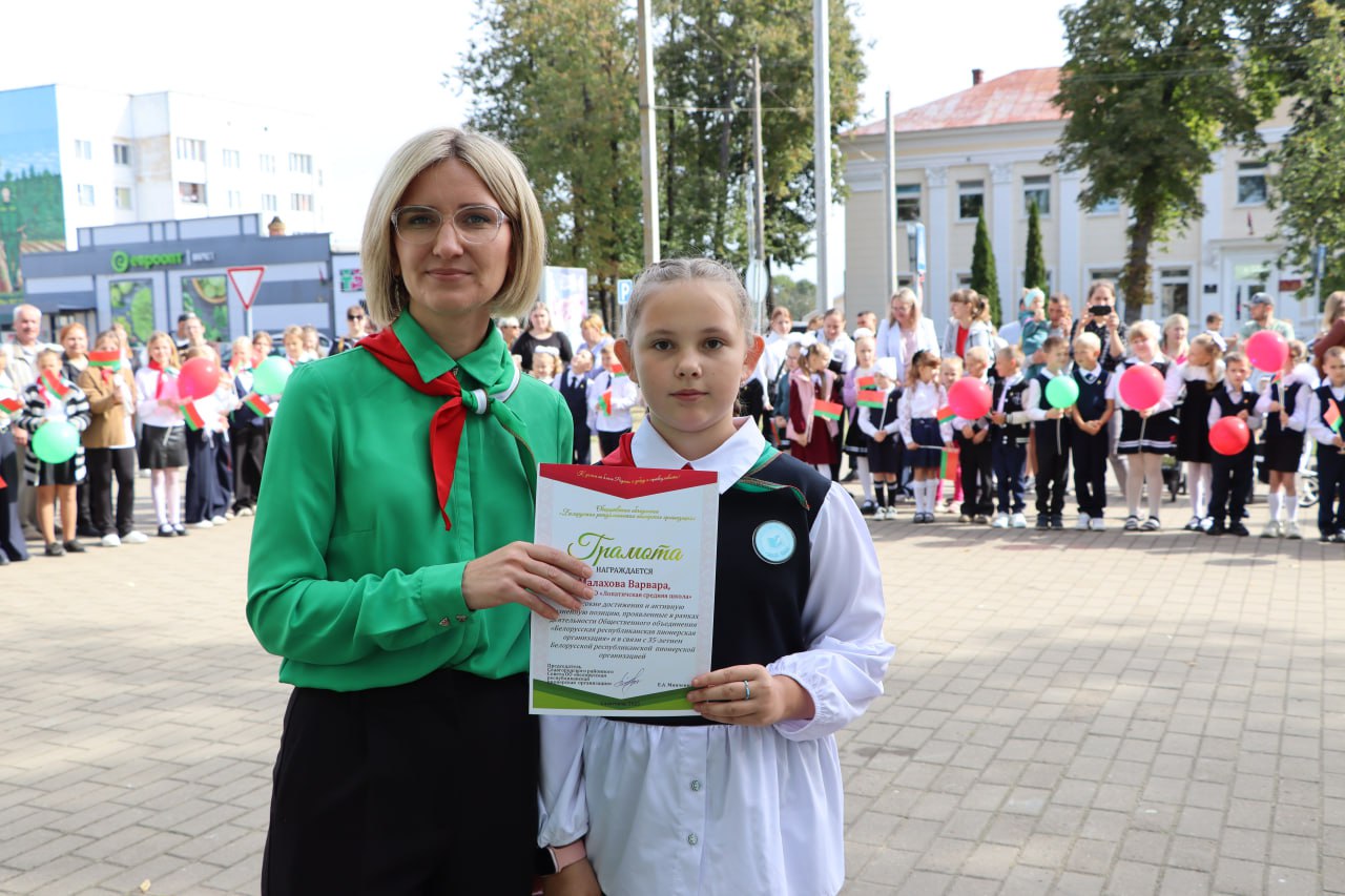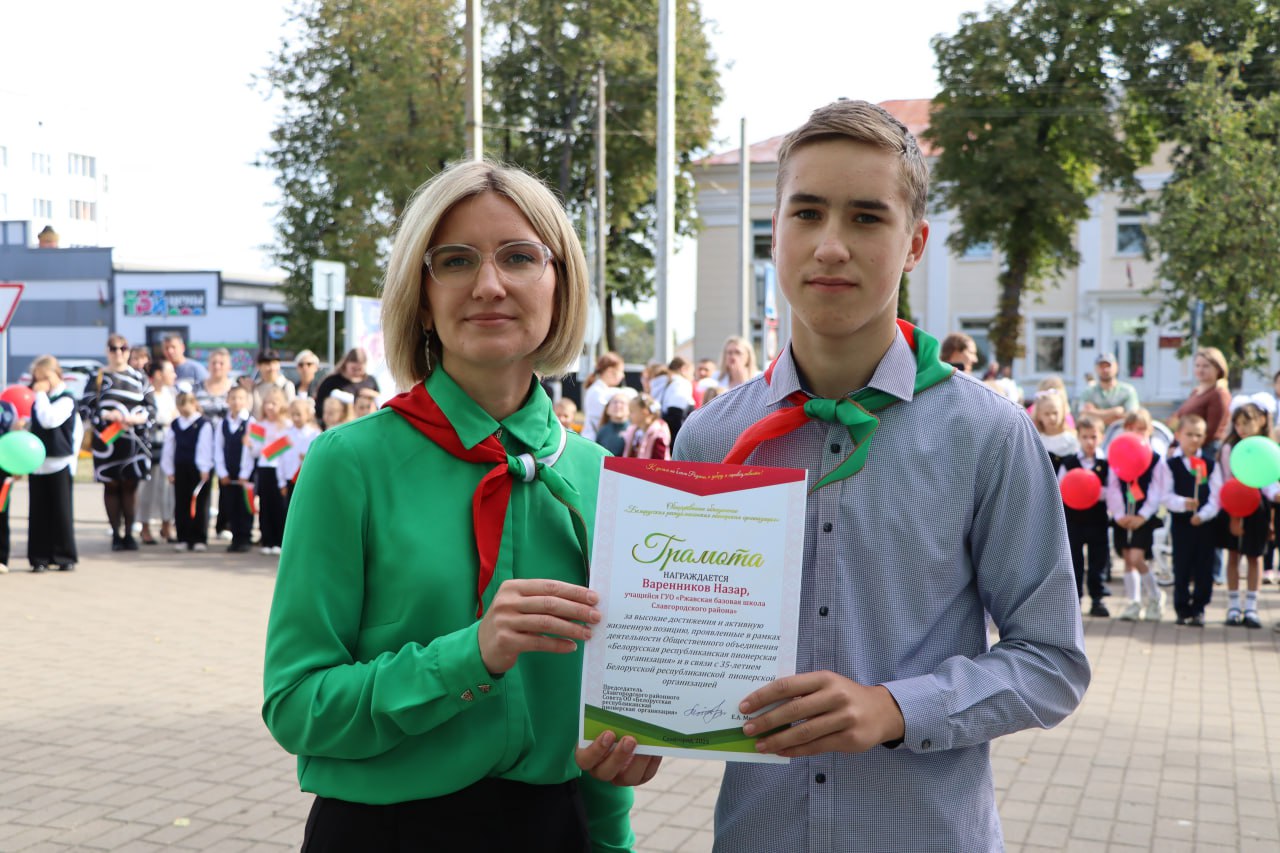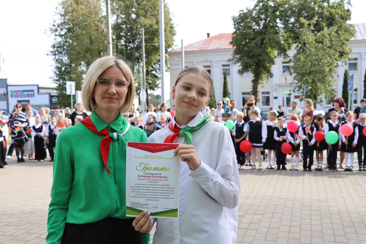 В минувшую субботу у кинотеатра «Родина» в Славгороде царила по-настоящему праздничная атмосфера. Весёлый детский смех, яркие пионерские галстуки, радостные лица — всё говорило о том, что этот день особенный. 13 сентября Белорусская республиканская пионерская организация отметила своё 35-летие, собрав под своими знамёнами юных участников и гостей.