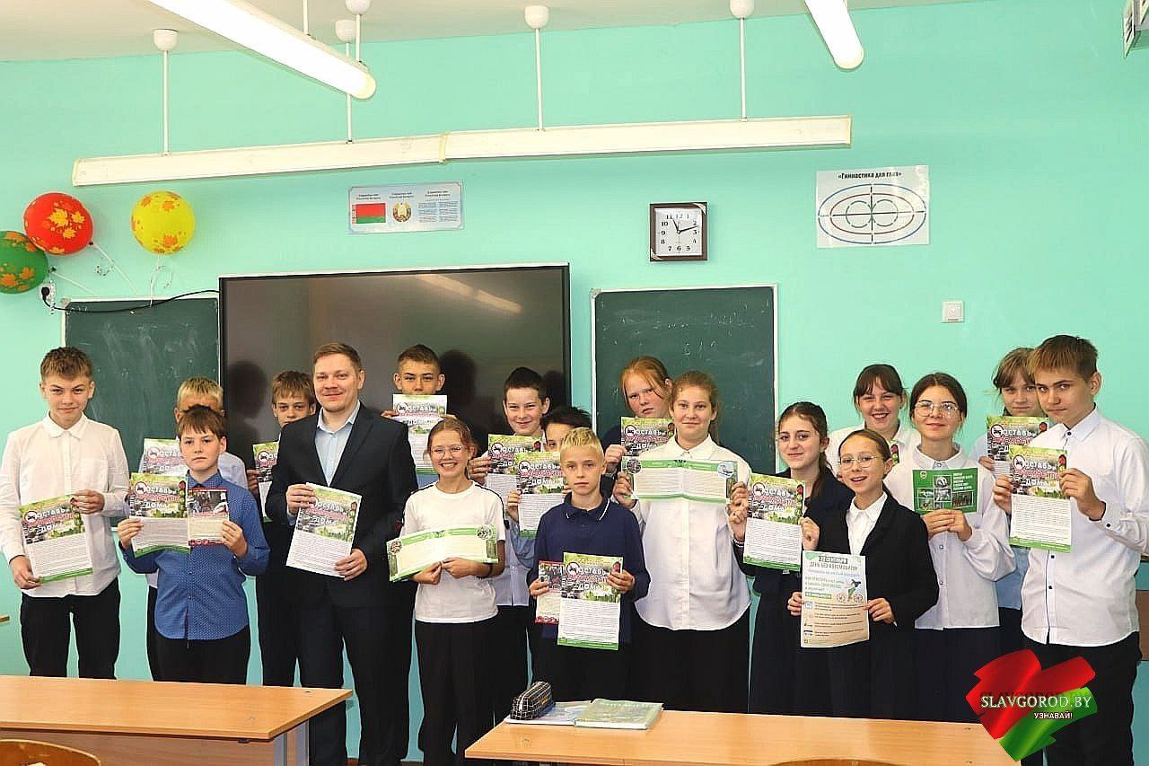 В рамках мероприятия главный специалист Славгородской районной инспекции природных ресурсов и охраны окружающей среды Сергей Ермоленко провел информационный урок для семиклассников первой городской школы. Он рассказал ребятам о значимости защиты природы и призвал их провести один день в пользу чистого воздуха, напомнив родителям о возможностях общественного транспорта и велосипедов.