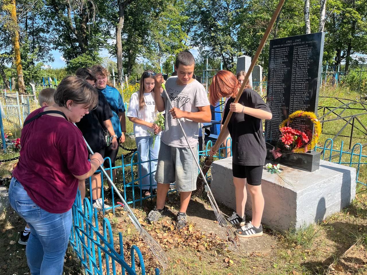 Особое внимание участники проекта уделили благоустройству братских могил в деревне Гайшин. С трепетом и уважением они убрали территорию, привели в порядок памятные знаки, возложили цветы.