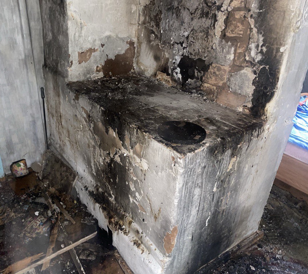Пожар ликвидирован. В результате пожара повреждено перекрытие и находящееся в доме имущество. Предполагаемая причина пожара – нарушение правил эксплуатации печей, теплогенерирующих устройств и агрегатов (перекал).