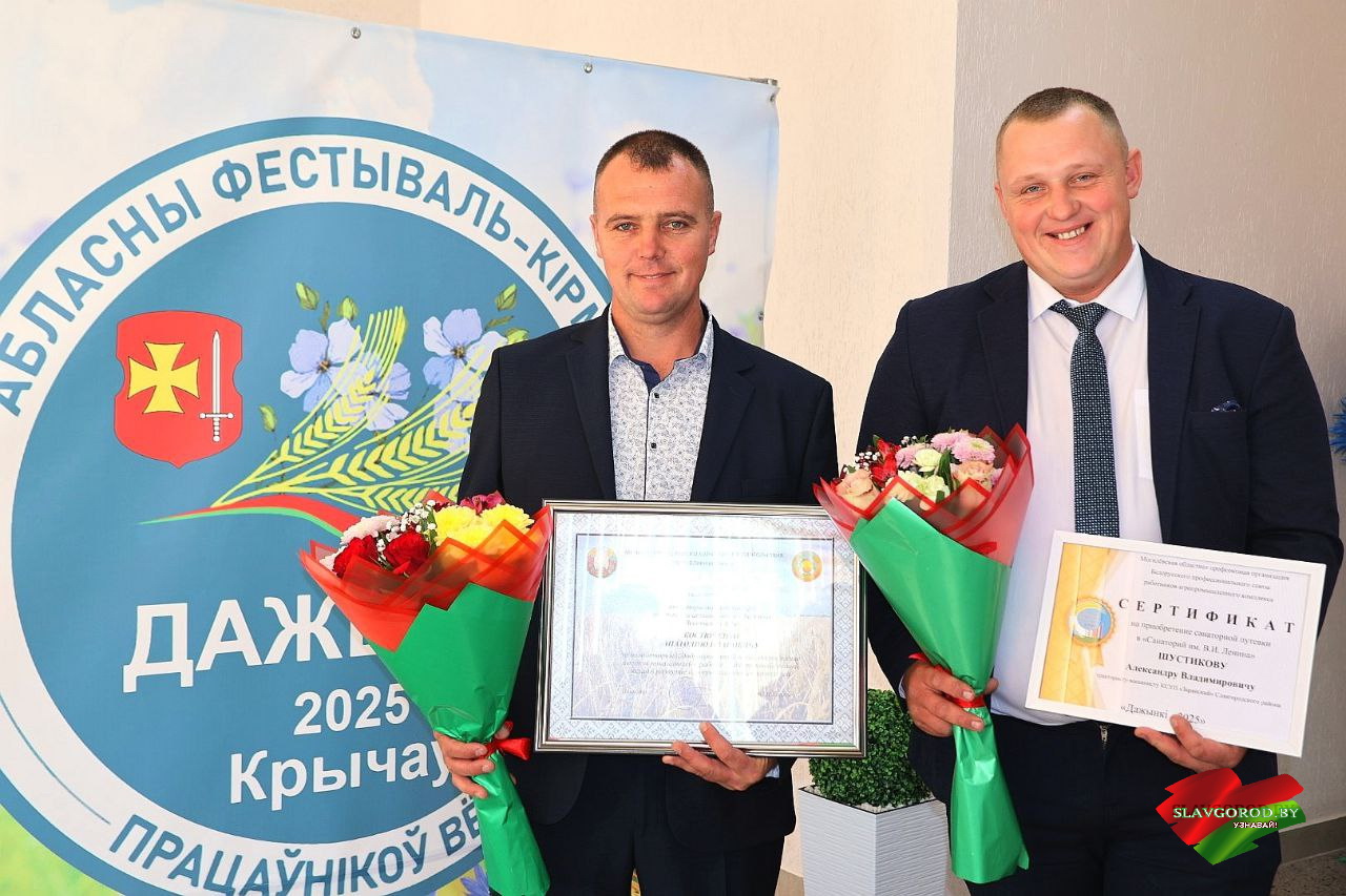 В Кричевской районном центре культуры прошла церемония награждения победителей областного соревнования за достижения в уборке урожая-2025. Лучшим из лучших аграриям вручили заслуженные награды. В авангарде и славгородские хлеборобы: трактористу-машинисту ОАО «Леснянский Агро» Анатолию Костюченко высокую награду — Благодарность Министерства сельского хозяйства и продовольствия Беларуси — вручил заместитель министра Виталий Кулак; тракторист-машинист КСУП «Зарянский» Александр Шустиков награжден Сертификатом на путевку в «Санаторий им В. И. Ленина», которую вручил председатель Могилевской областной профсоюзной организации Белорусского профессионального союза работников АПК Владимир Петрович.