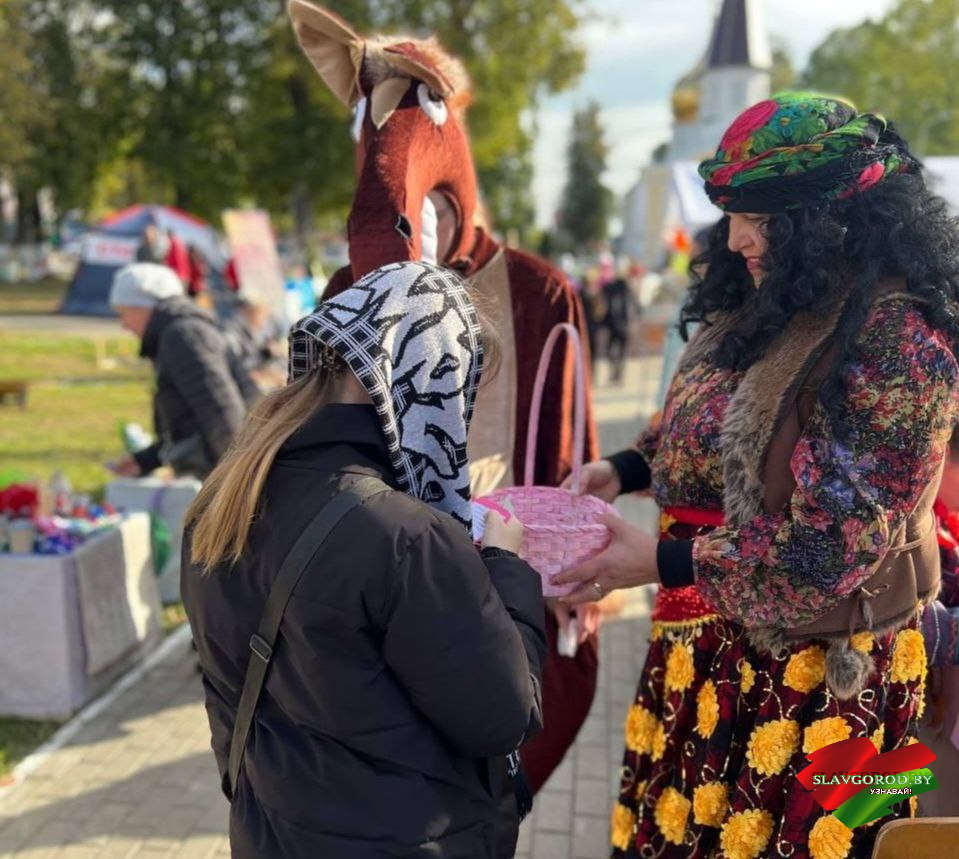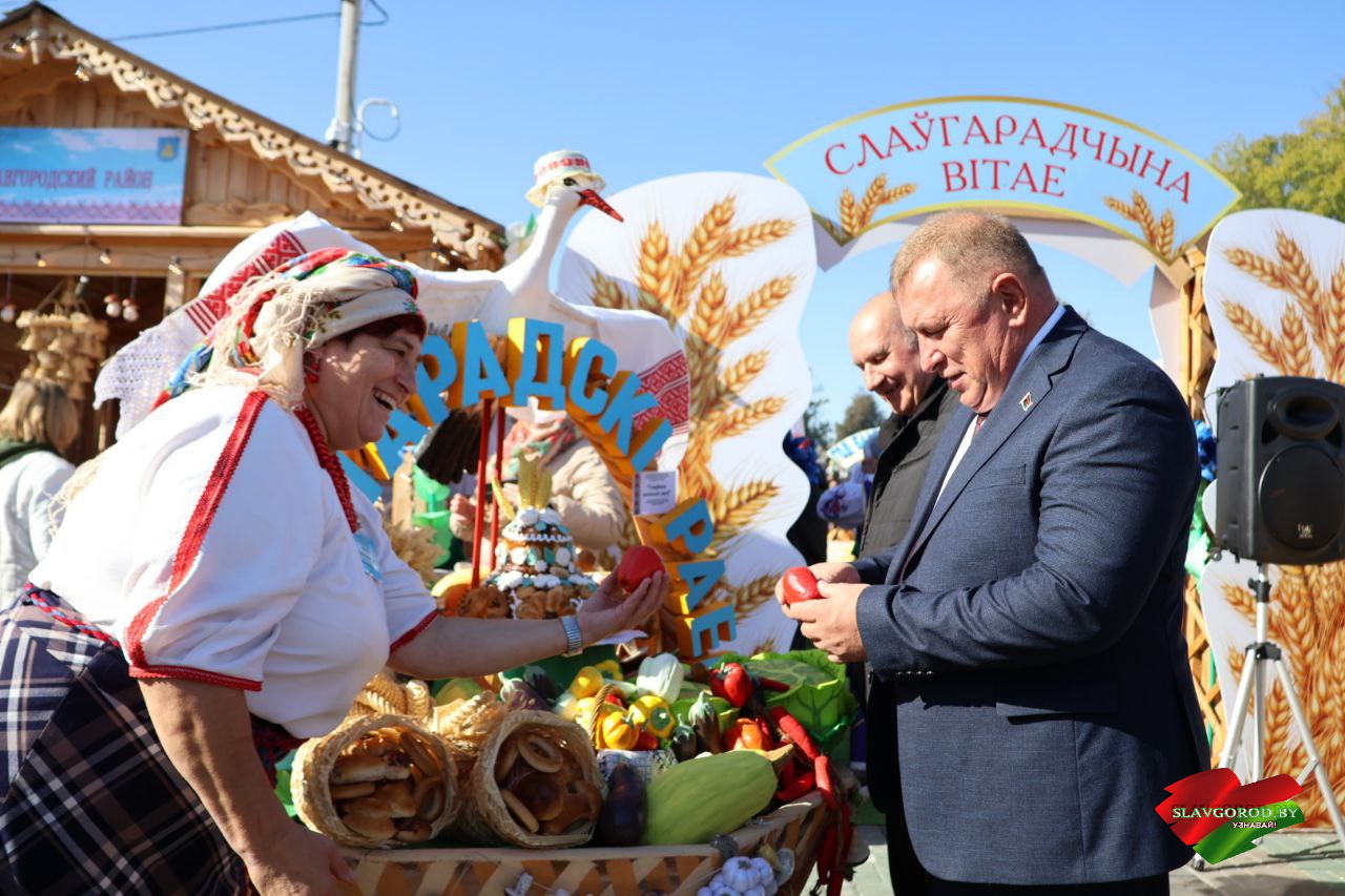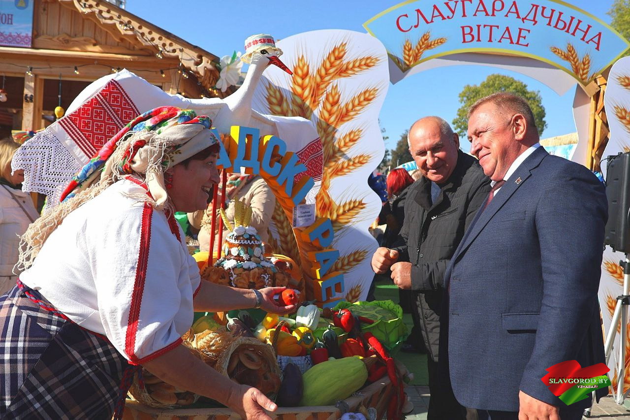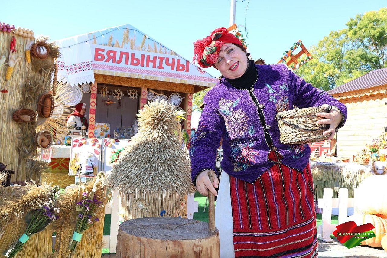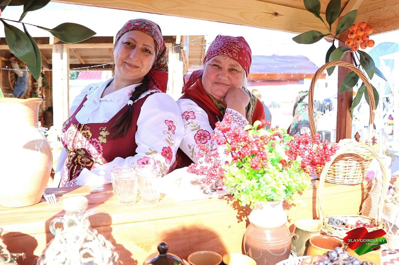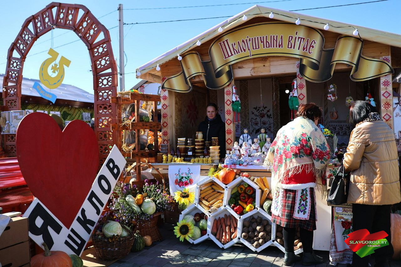 Центральная улица Кричева превратилась в калейдоскоп ярких красок. Здесь широко развернулась выставка-ярмарка «Дажыначны кірмаш». Каждый район области представил свою локацию. И у каждого была своя неповторимая «изюминка». Душевно, вкусно, с песнями и танцами встречали гостей на колоритных фудкортах и самобытных подворьях. И среди этого великолепия локация Славгородчины гостеприимно распахнула свои двери. Выставки сувениров наших мастеров декоративно-прикладного искусства, сельхозпродукция, удивительные композиции из овощей и фруктов, звонкие веселые песни работников централизованной сети публичных библиотек привлекали внимание гостей. Здесь каждый экспонат, каждое угощение, каждый номер самодеятельности рассказывал историю земли славгородской.