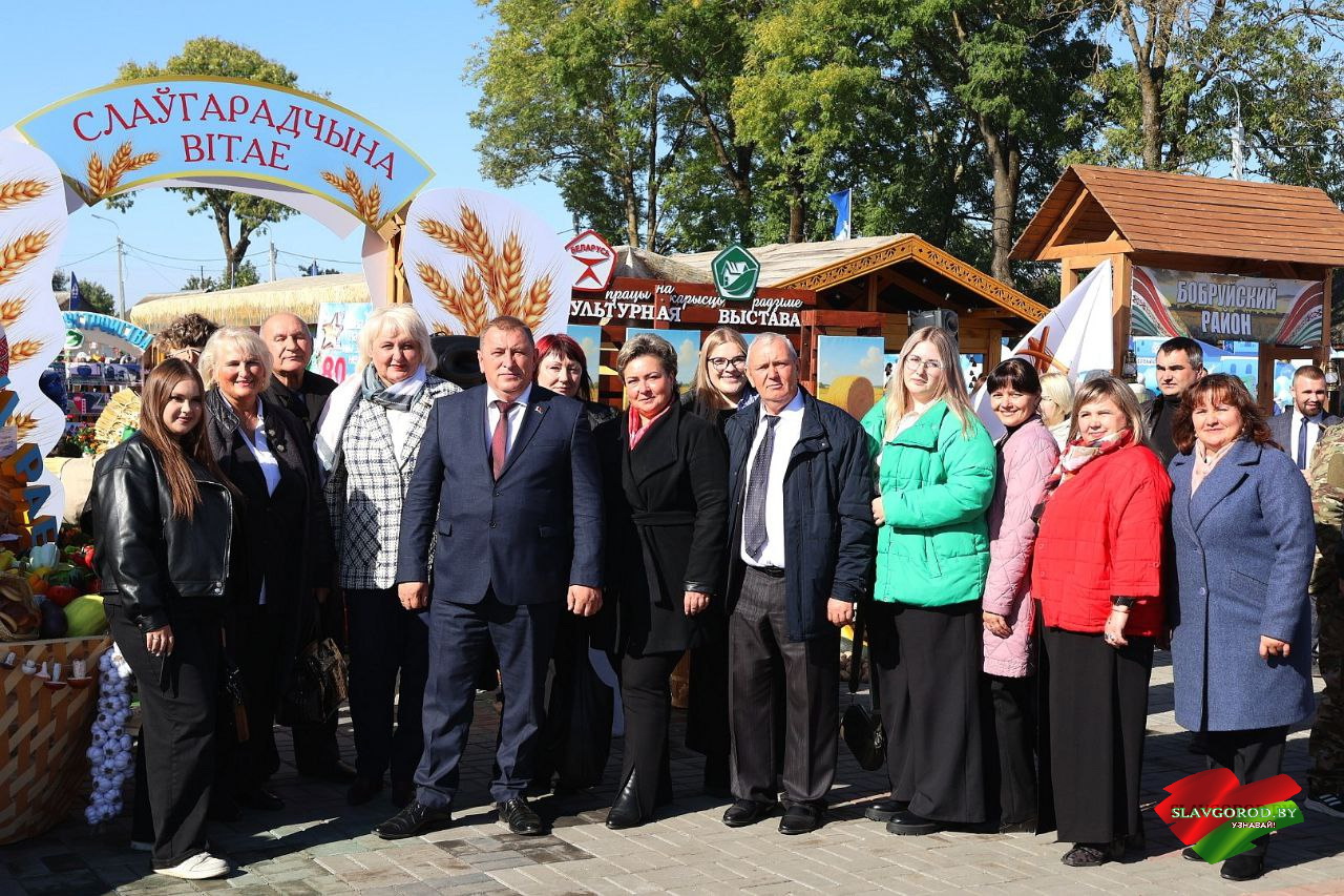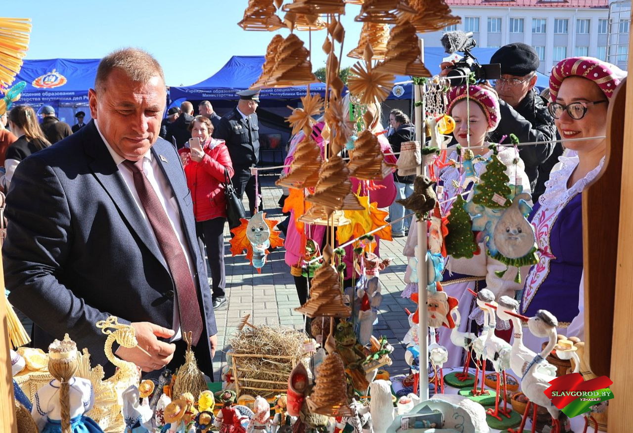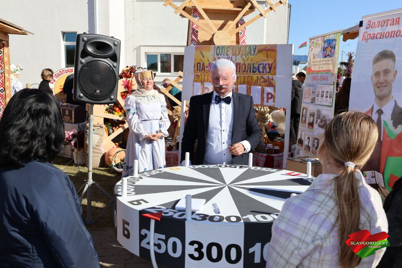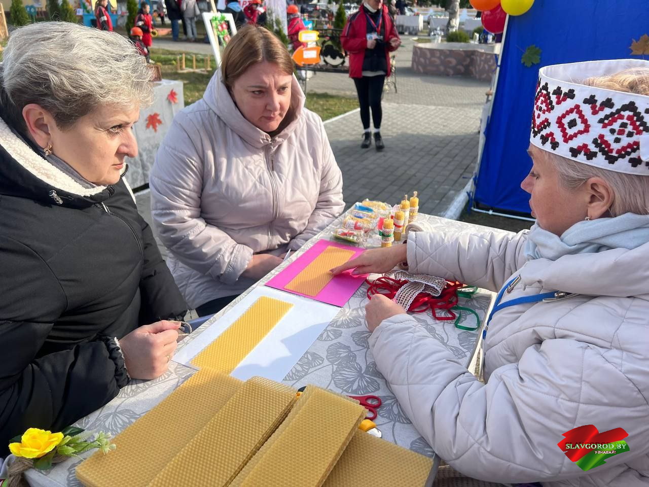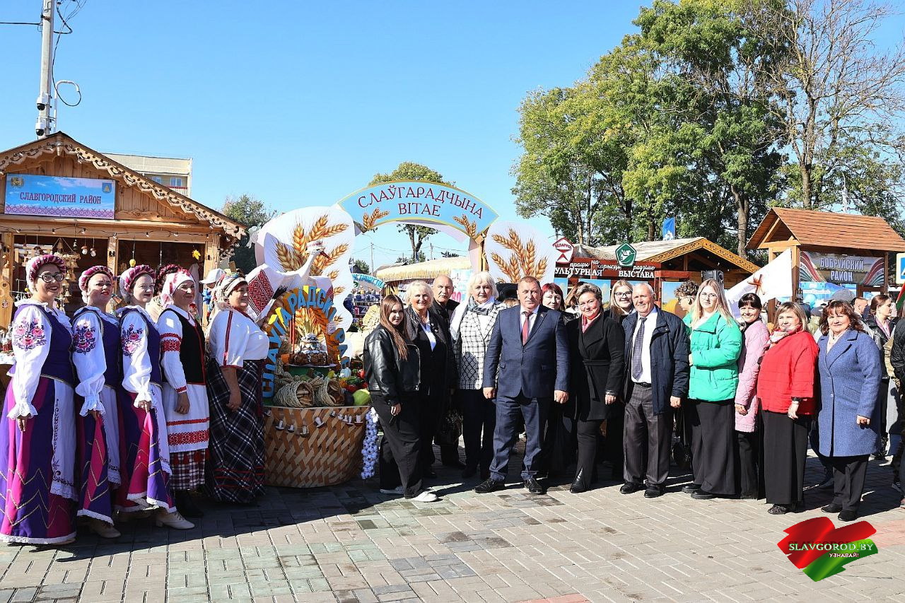Центральная улица Кричева превратилась в калейдоскоп ярких красок. Здесь широко развернулась выставка-ярмарка «Дажыначны кірмаш». Каждый район области представил свою локацию. И у каждого была своя неповторимая «изюминка». Душевно, вкусно, с песнями и танцами встречали гостей на колоритных фудкортах и самобытных подворьях. И среди этого великолепия локация Славгородчины гостеприимно распахнула свои двери. Выставки сувениров наших мастеров декоративно-прикладного искусства, сельхозпродукция, удивительные композиции из овощей и фруктов, звонкие веселые песни работников централизованной сети публичных библиотек привлекали внимание гостей. Здесь каждый экспонат, каждое угощение, каждый номер самодеятельности рассказывал историю земли славгородской.