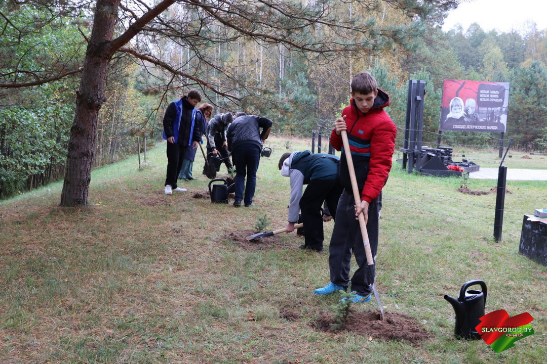 У памятного знака в деревне Рабовичи прошла международная акция «Сад памяти», приуроченная к 80-летию Великой Победы.