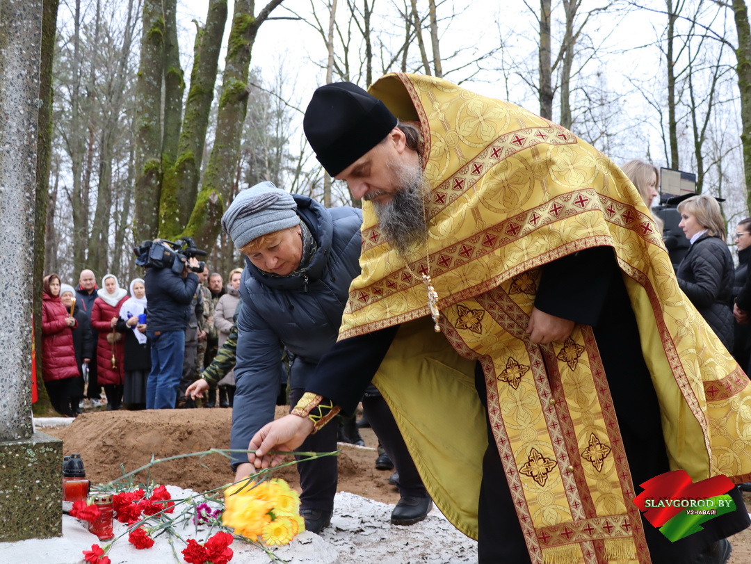 У обелиска на 8-м километре собрались представители власти, духовенства, школьники и жители. Здесь были перезахоронены останки 17 неизвестных бойцов, поднятых в местах ожесточённых июльских боёв 1941 года.