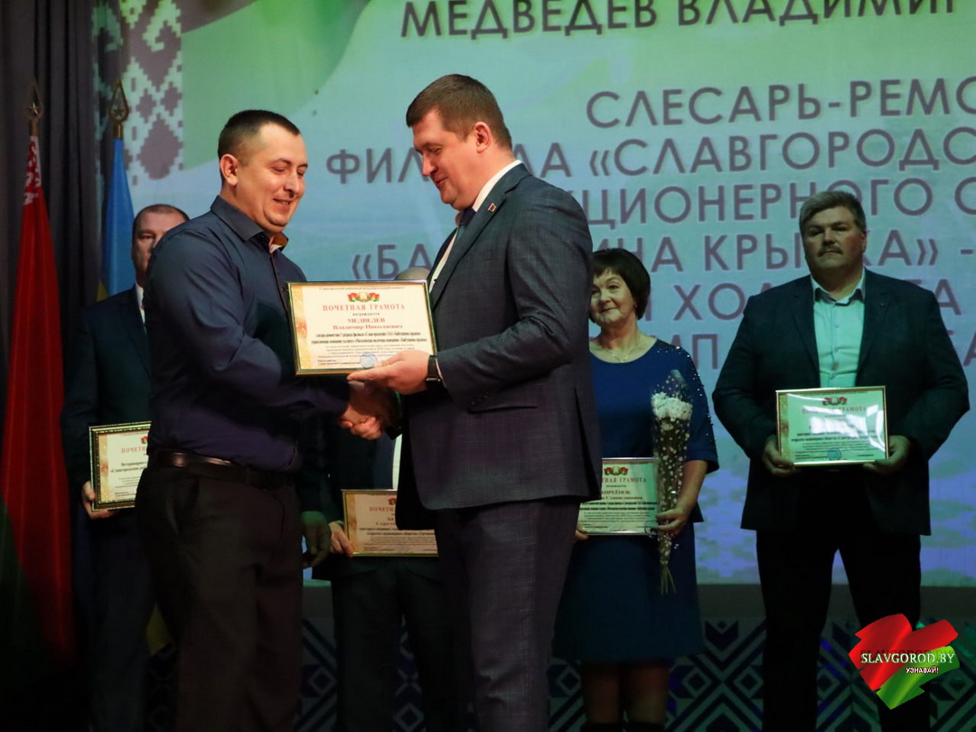 «Честь и хвала людям земли» – так называлось торжественное мероприятие, в котором приняли участие почетные гости: председатель Славгородского районного Совета депутатов Светлана Езерская, первый заместитель председателя Славгородского райисполкома – начальник управления по сельскому хозяйству и продовольствию Андрей Валынцев, заместители председателя райисполкома, делегация Хиславичского района Смоленской области Российской Федерации, заместитель директора по идеологической и кадровой работе, социальным и общим вопросам ОАО «Красный пищевик» Олег Малышевский, почетные граждане Славгородского района, руководители районных служб и сельскохозяйственных предприятий, ветераны труда и работники сельскохозяйственной отрасли района.