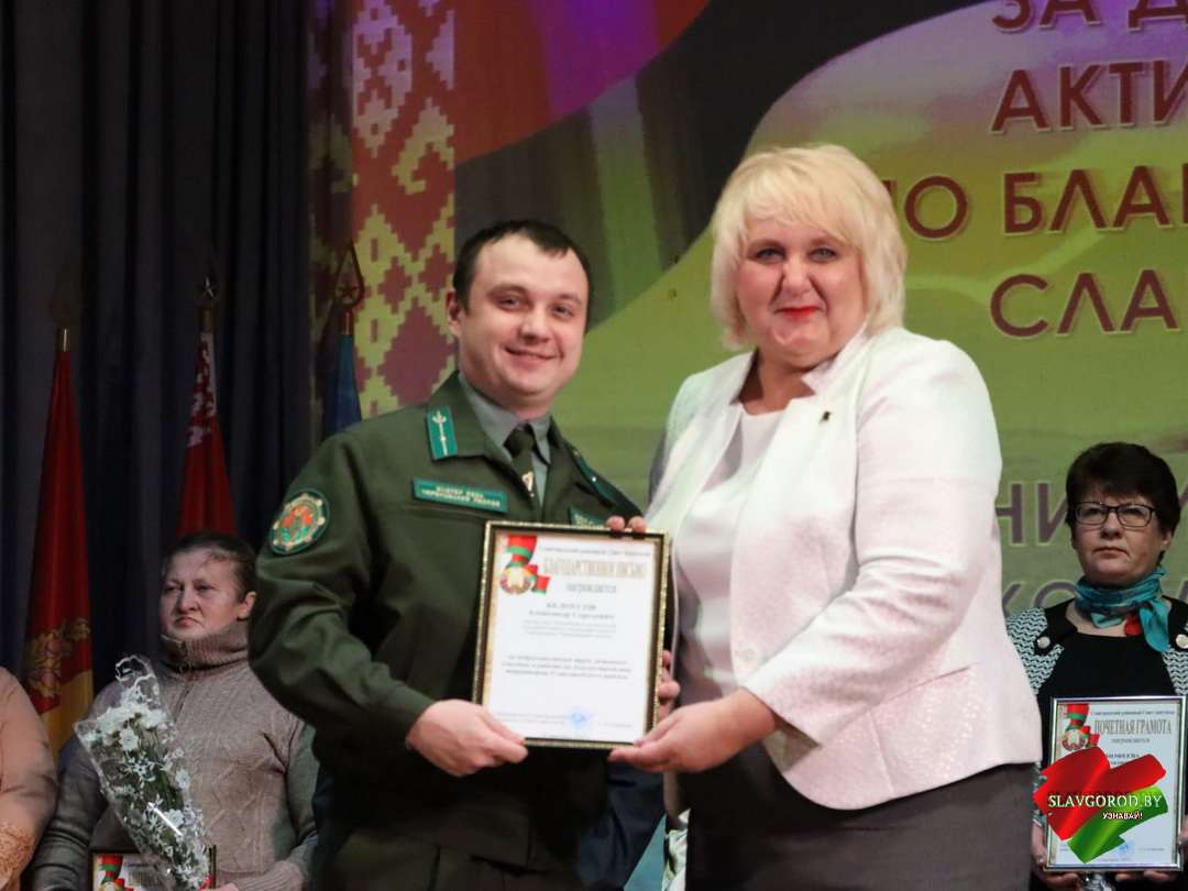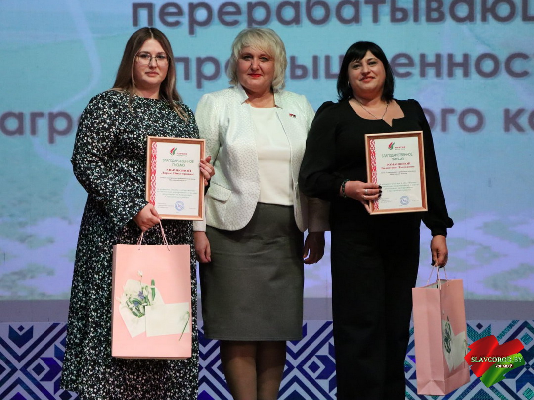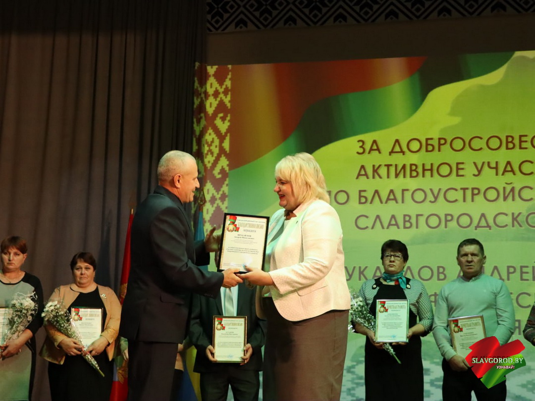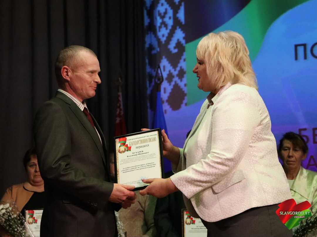 Эстафету чествования виновников торжества продолжила Светлана Езерская. Почетными грамотами, Благодарственными письмами Славгородского районного Совета депутатов и Благодарственными письмами Славгородского районного отделения Могилевской области Белорусской партии «Белая Русь» отмечены лучшие труженики, а также общественные активисты.