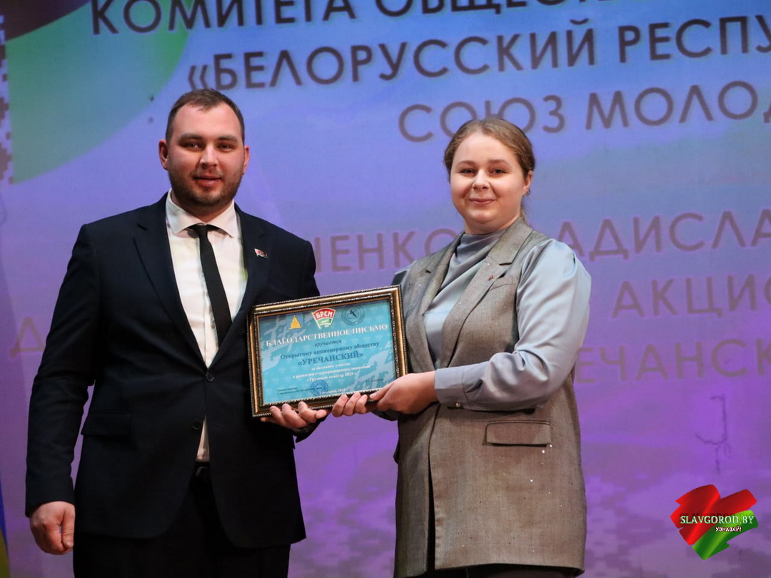 Поддержка и содействие развитию студенческого движения в районе также получили заслуженное внимание. Первый секретарь Славгородского РК ОО «Белорусский республиканский союз молодёжи» Татьяна Степанова за активное участие в развитии студотрядовского движения наградила Дипломами и ценными подарками: директора ОАО «Уречанский» Владислава Адамченко, директора ОАО «Привольный агро» Михаила Плиндова и директора ПТУП «Красный пищевик – Славгород» Виктора Пташица.