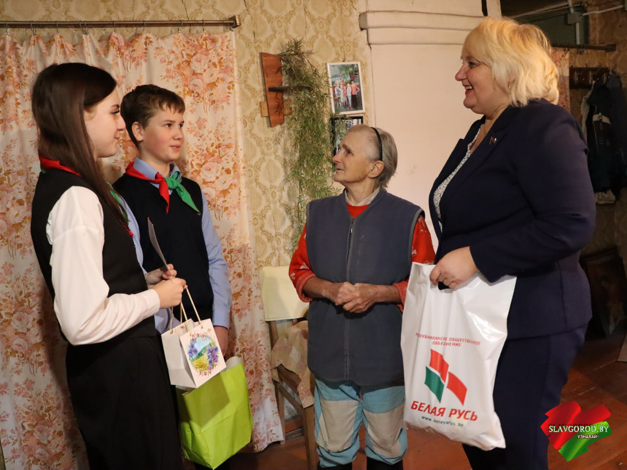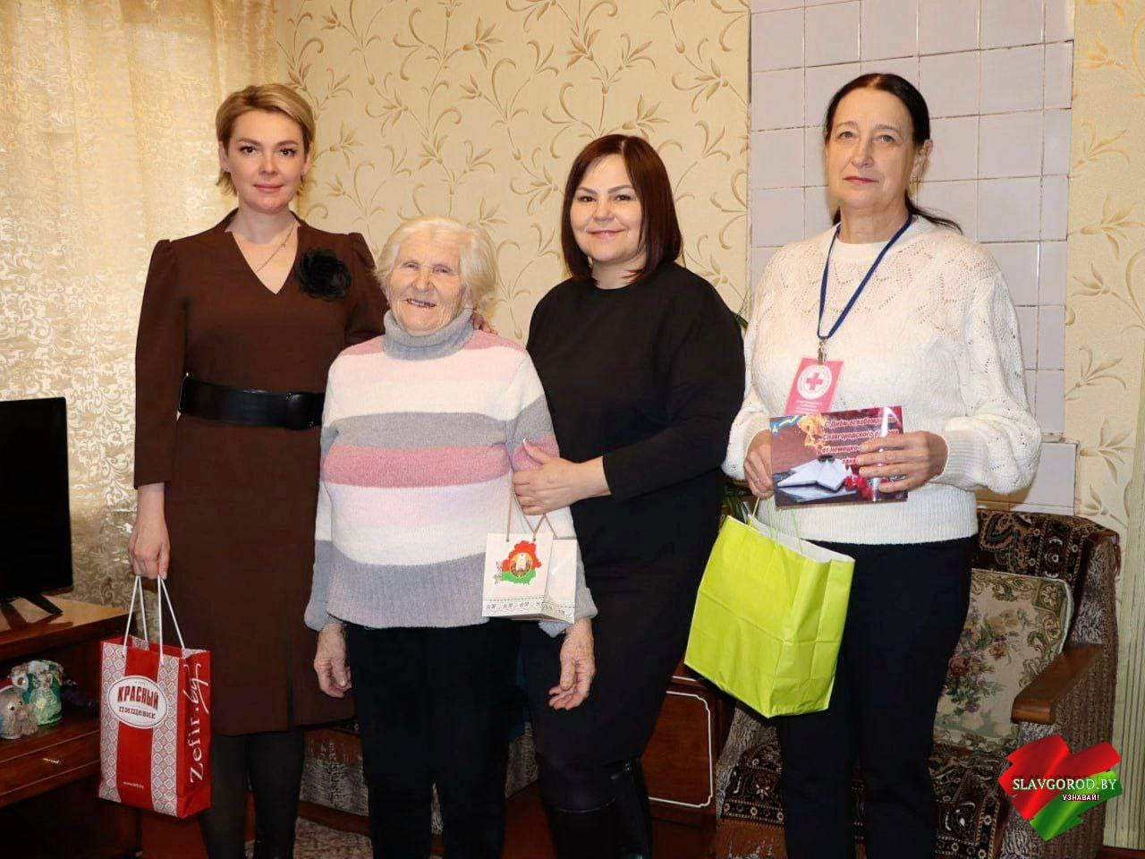 Гостей встречала и Анна Лазаревна Грузинова, детство которой безжалостно уничтожила война. Будучи ребенком, она прошла тяжелейшие испытания в фашистской неволе. С памятной датой ее поздравили: заместитель председателя Славгородского райисполкома Ольга Василевская, директор Учреждения «Славгородский районный центр социального обслуживания населения» Людмила Воронцова и председатель районной организации Белорусского Красного Креста Мария Даниленко. Гости тепло поздравили Анну Лазаревну, выразили ей глубокое уважение, вручили поздравительную открытку от председателя райисполкома Андрея Кожемякина и подарки.
