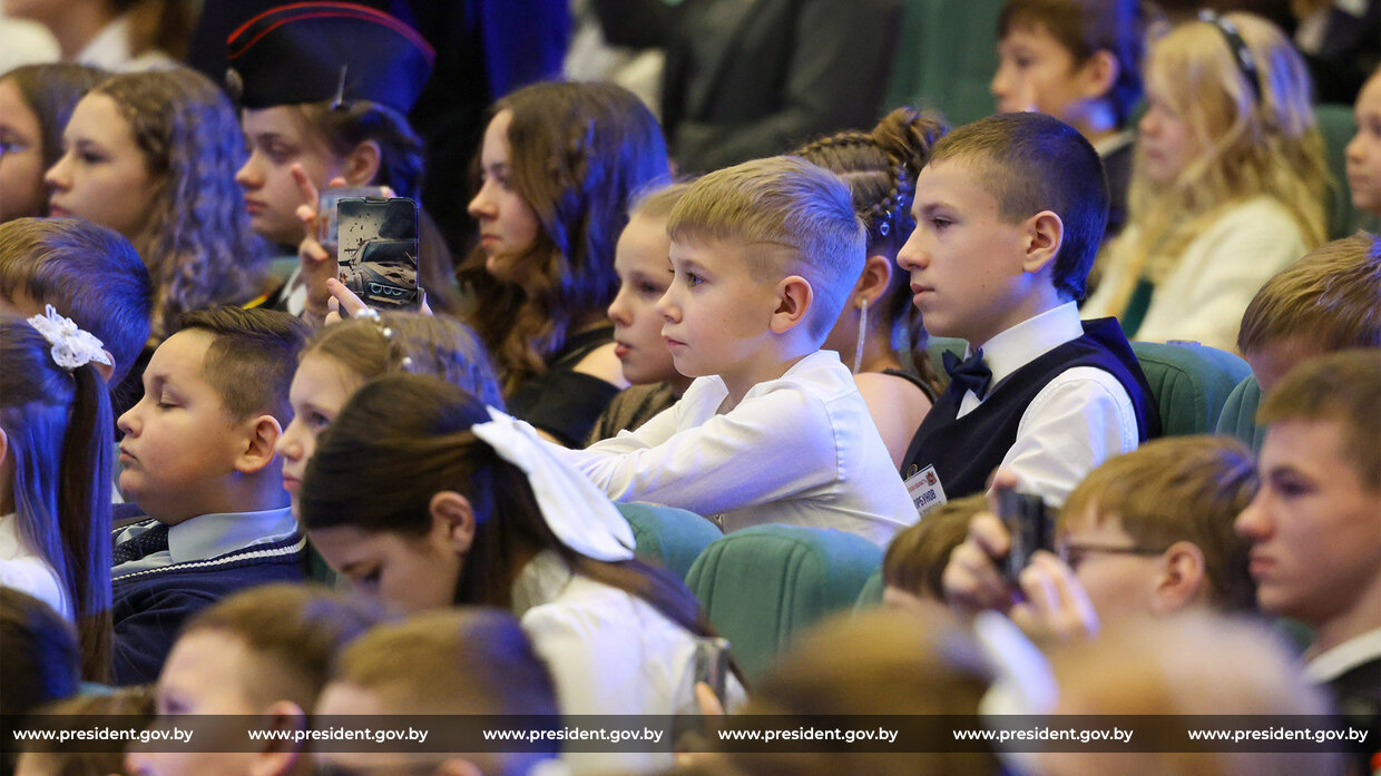 «Я отдаю себе отчет, что в этом зале абсолютно разные дети. Расхожее понятие — разные дети. Конечно же, разные — и по своему положению в том числе. Но, дорогие мои, поверьте моему жизненному опыту: мы в детстве, возможно, все разные, но сегодня как никогда у всех нас равные возможности. Надо только одно — трудиться», — сказал Александр Лукашенко.