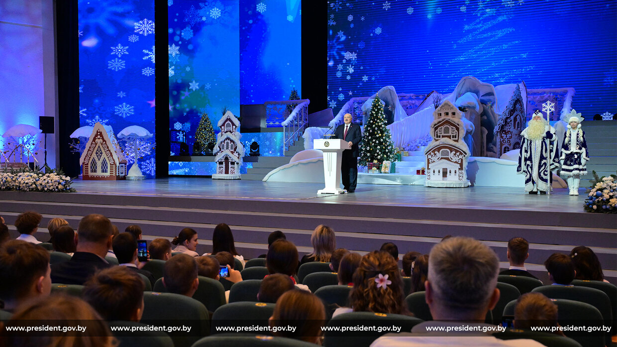 «Хочу поблагодарить наших взрослых, — сказал Александр Лукашенко. — Спасибо вам за то внимание, которое вы уделяете в эти предновогодние праздники нашим детям».