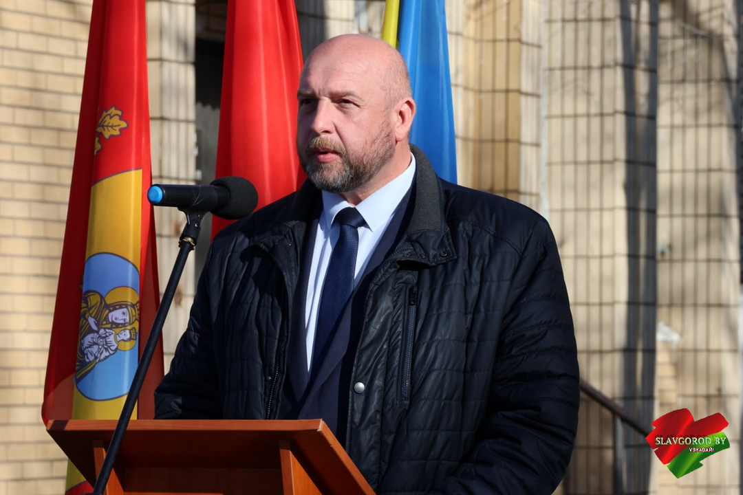 К участникам митинга обратился глава Славгородского района Максим Потапенко. Его слова звучали как наказ будущим поколениям: