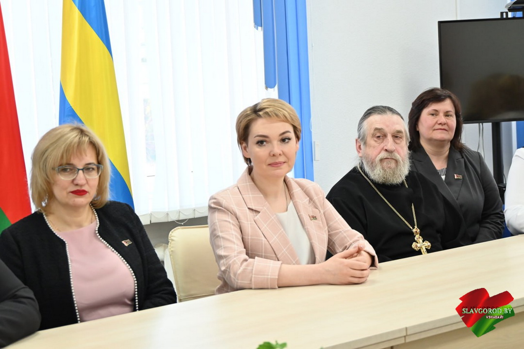 Разделить праздник с жителями района приехали гости из России — делегация муниципального образования «Хиславичский муниципальный округ» Смоленской области: глава образования Сергей Шапкин, председатель окружного Совета депутатов Светлана Костюкова, заместители главы муниципального образования Юлия Климова и Екатерина Миллер, председатель Комитета по культуре и спорту администрации Виктория Илларионова, директор Хиславичского районного центра культурно-досуговой работы и народного творчества Наталья Шатрова, настоятель Борисо-Глебского храма п. Хиславичи Отец Роман, председатель районной общественной организации «Ветераны (пенсионеры) войны, труда, Вооруженных сил и правоохранительных органов» Андрей Волоцуев.